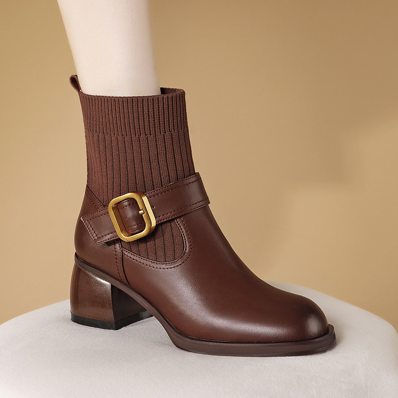 Ретро кожаные демисезонные эластичные короткие сапоги