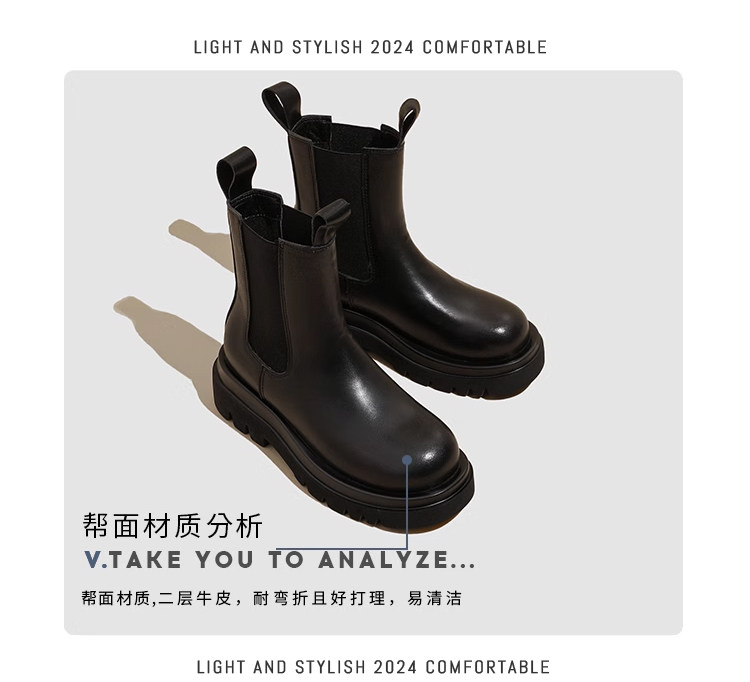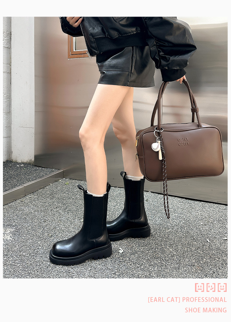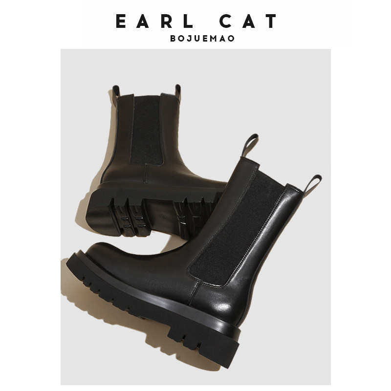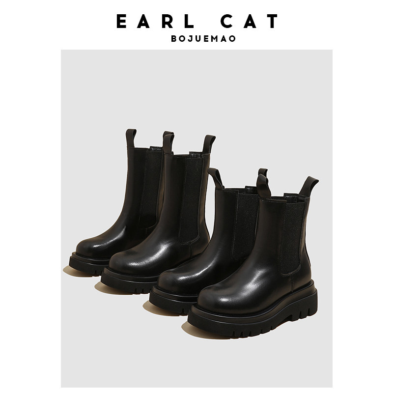 伯爵猫 Челси, ботинки, флисовые короткие сапоги на платформе, модель весна/осень 2025 года, из натуральной кожи