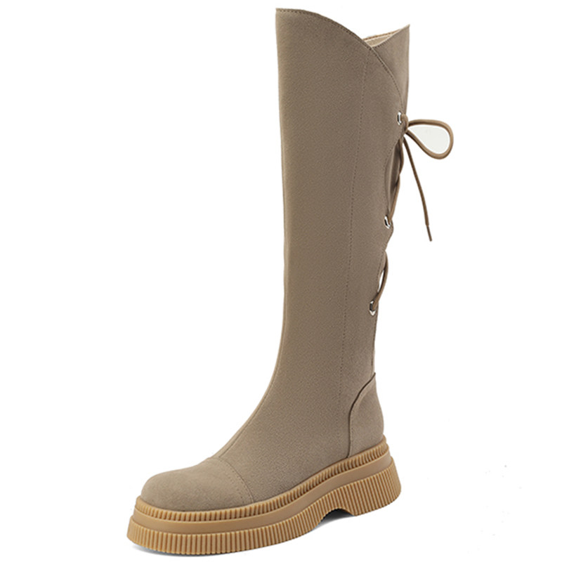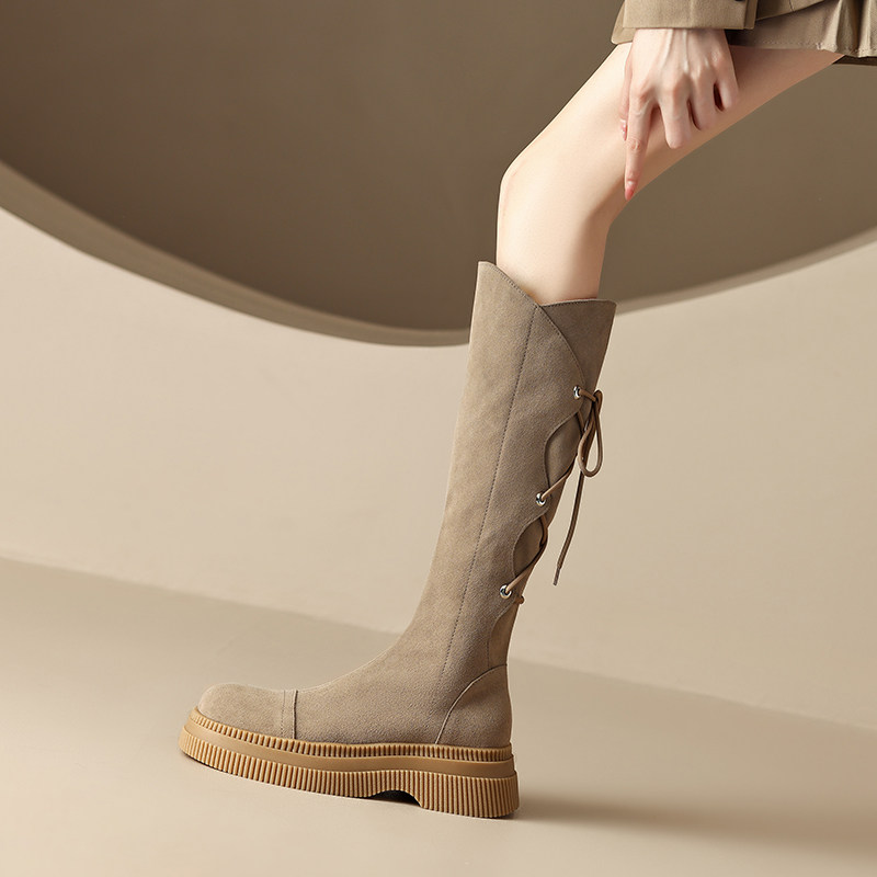 非侈 Feichi/супертонкие высокие сапоги из натуральной кожи с боковой молнией на толстой подошве, женские длинные сапоги с ремешком сзади, 2024 г.