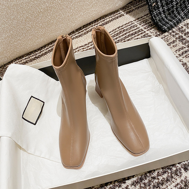 Ботинки, белые демисезонные высокие короткие сапоги на платформе, в корейском стиле, французский стиль