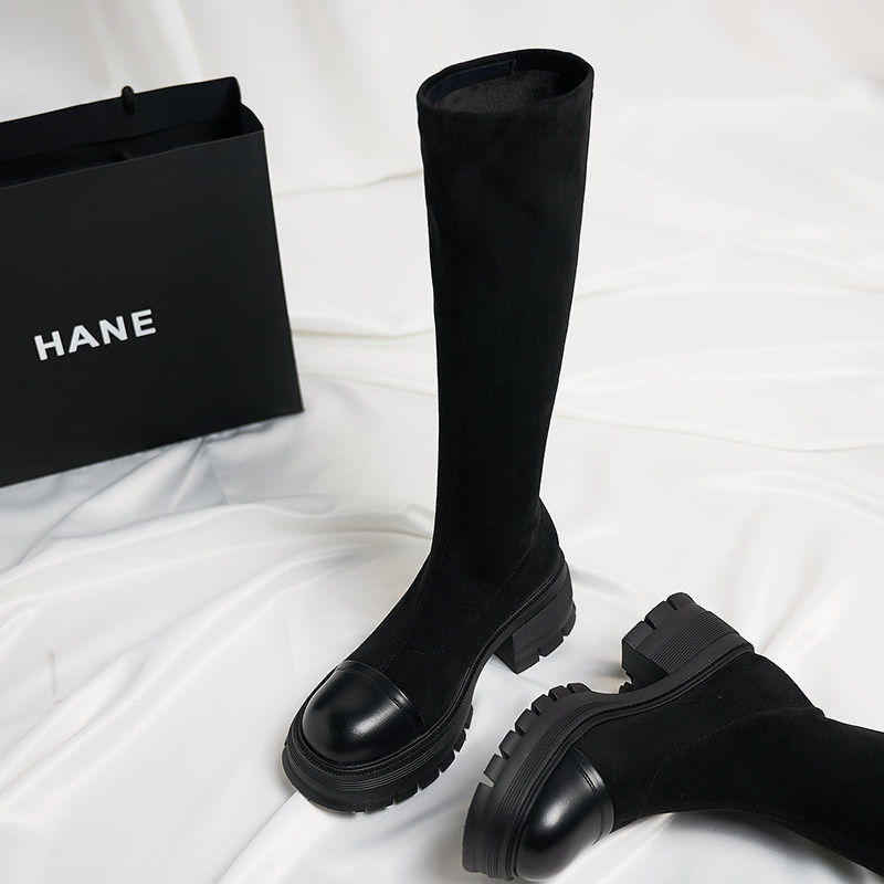 Демисезонные высокие сапоги на платформе, универсальный эластичный комплект, в корейском стиле