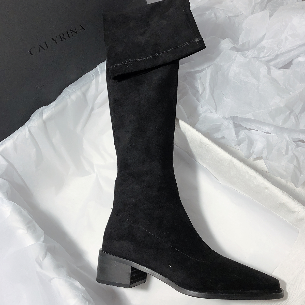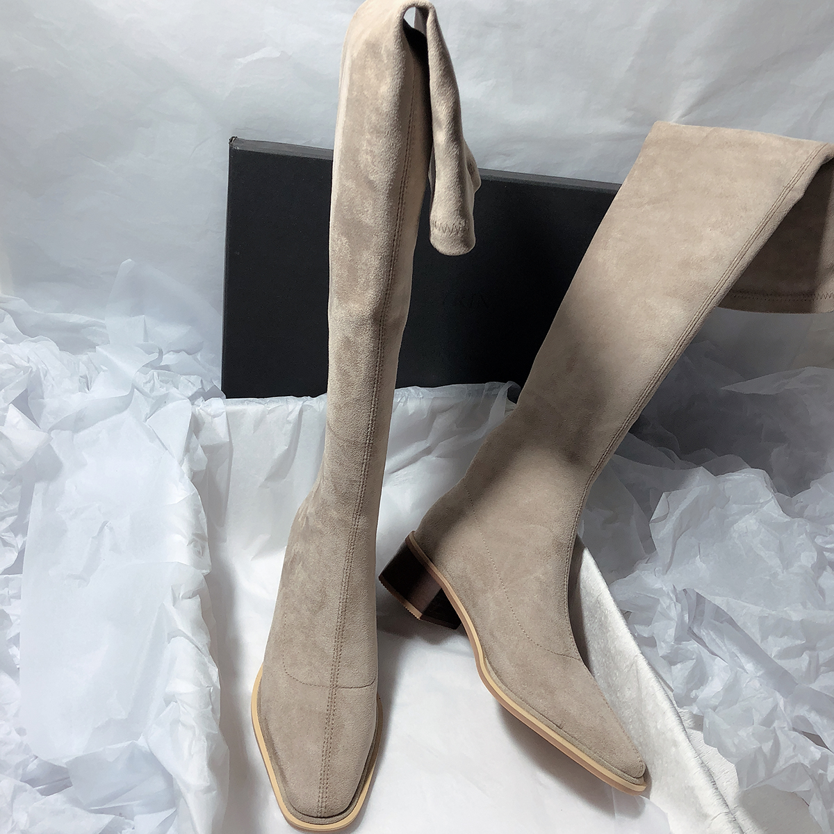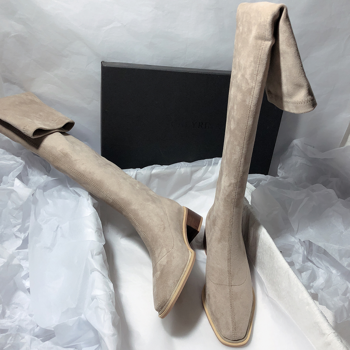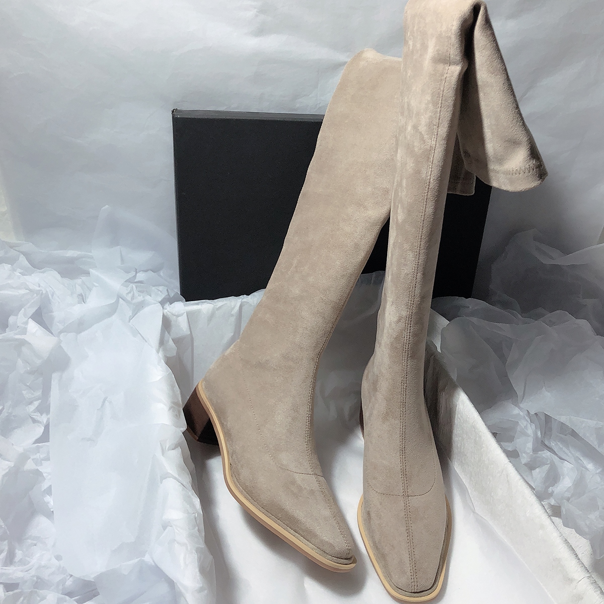 Элегантные эластичные высокие сапоги, из натуральной кожи