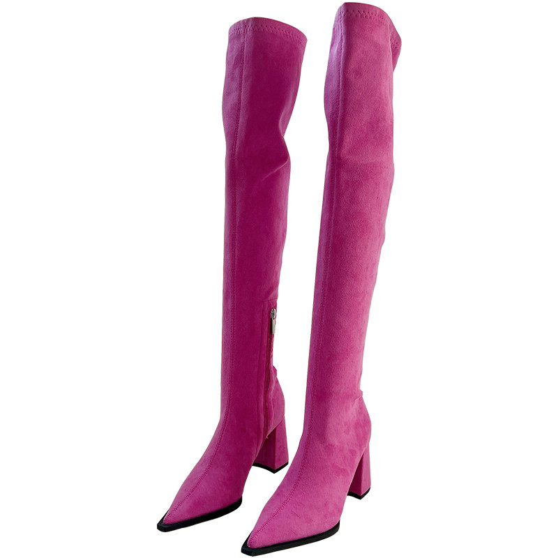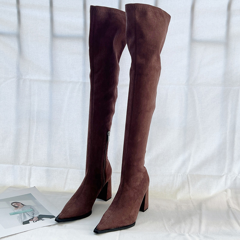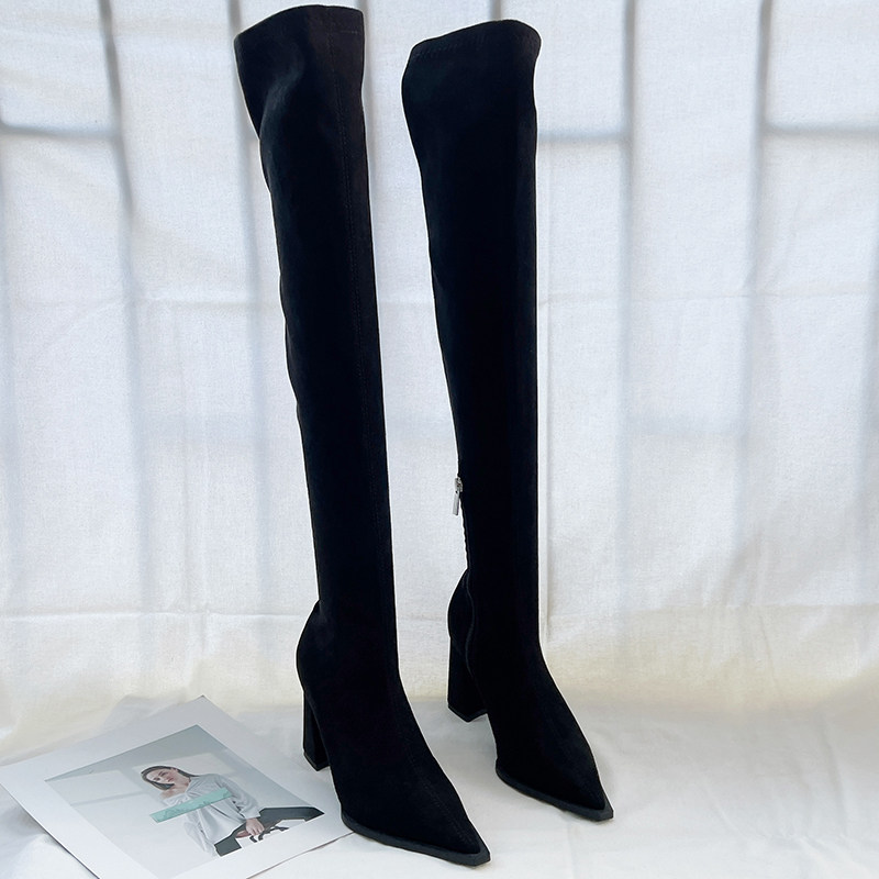 Эластичные замшевые высокие высокие сапоги с заостренным носом, осенние