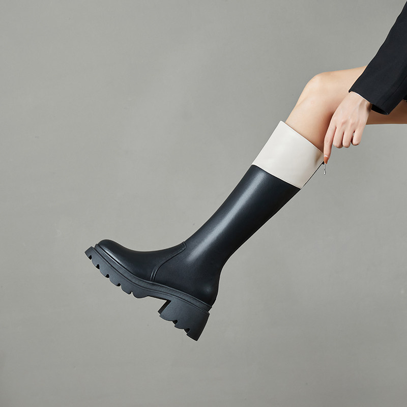 Демисезонные высокие сапоги на платформе, из натуральной кожи, подходит для подростков, по фигуре