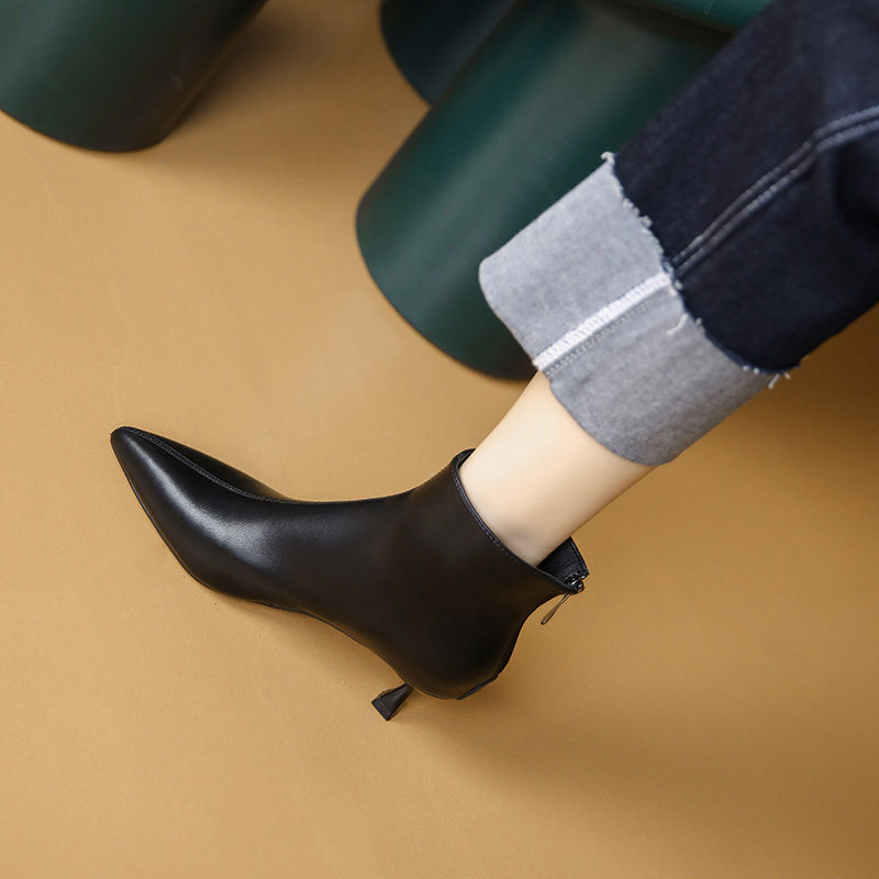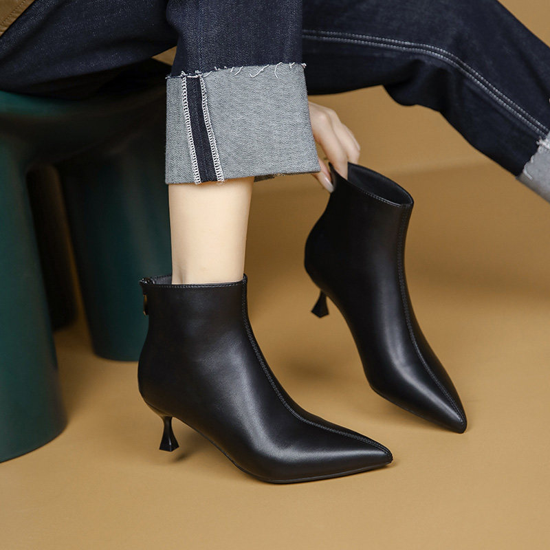 Короткие сапоги на высоком каблуке, утепленные белые ботильоны, ботинки с заостренным носом, французский стиль