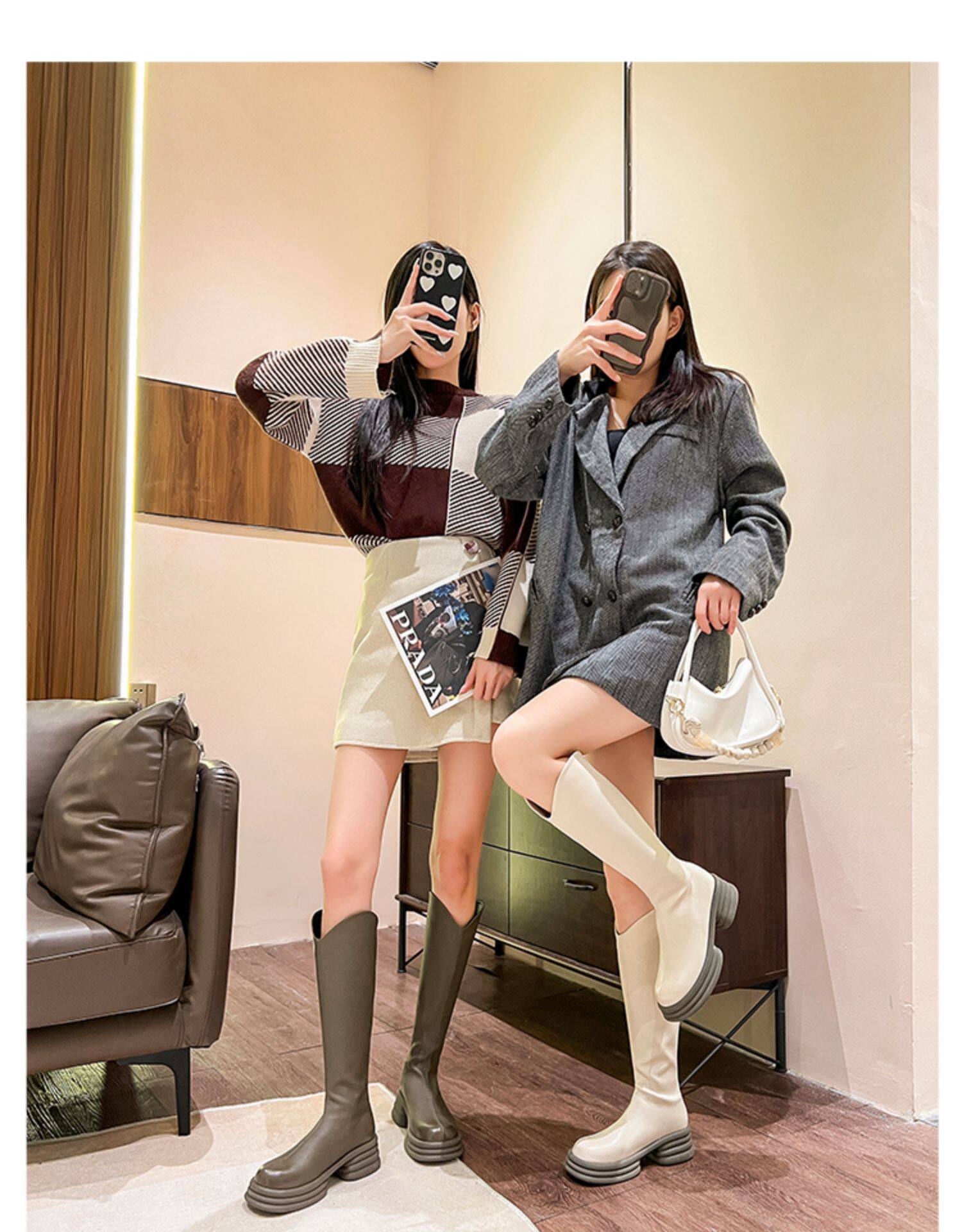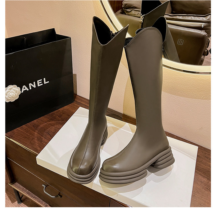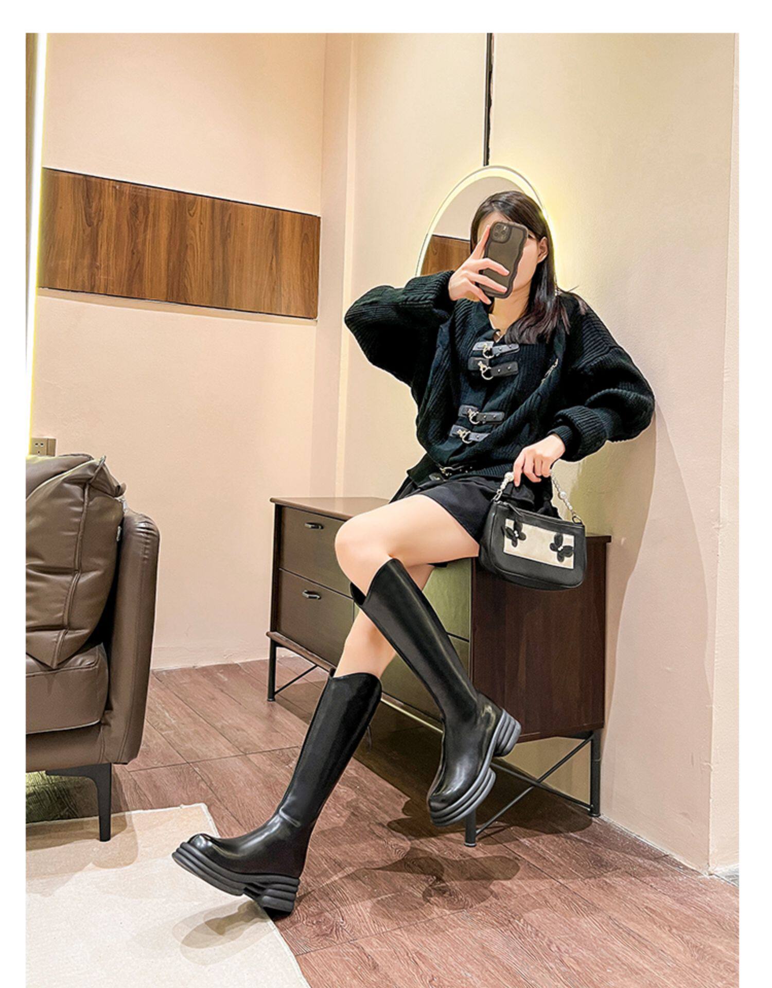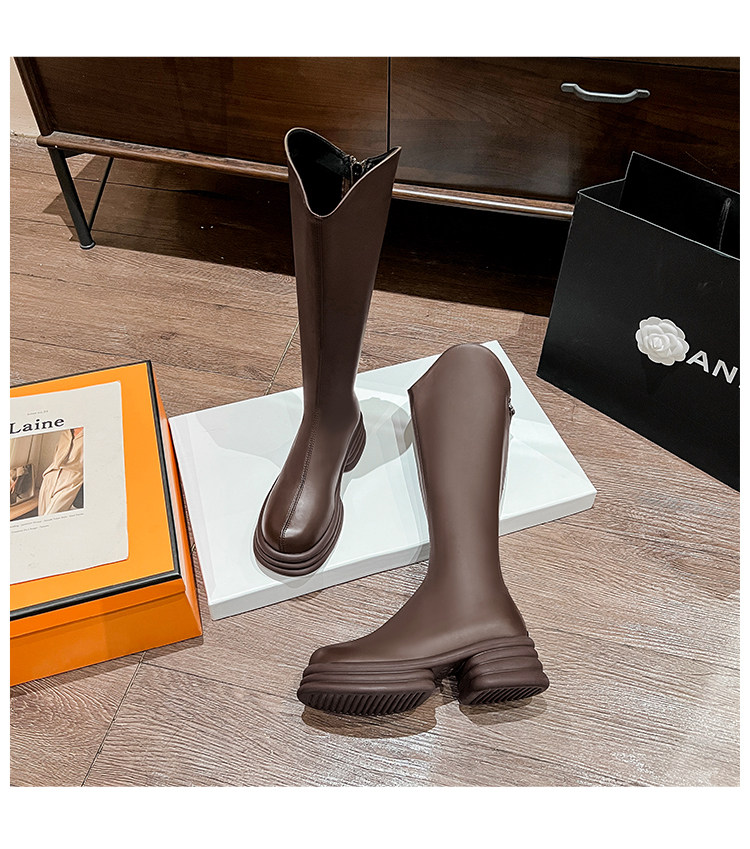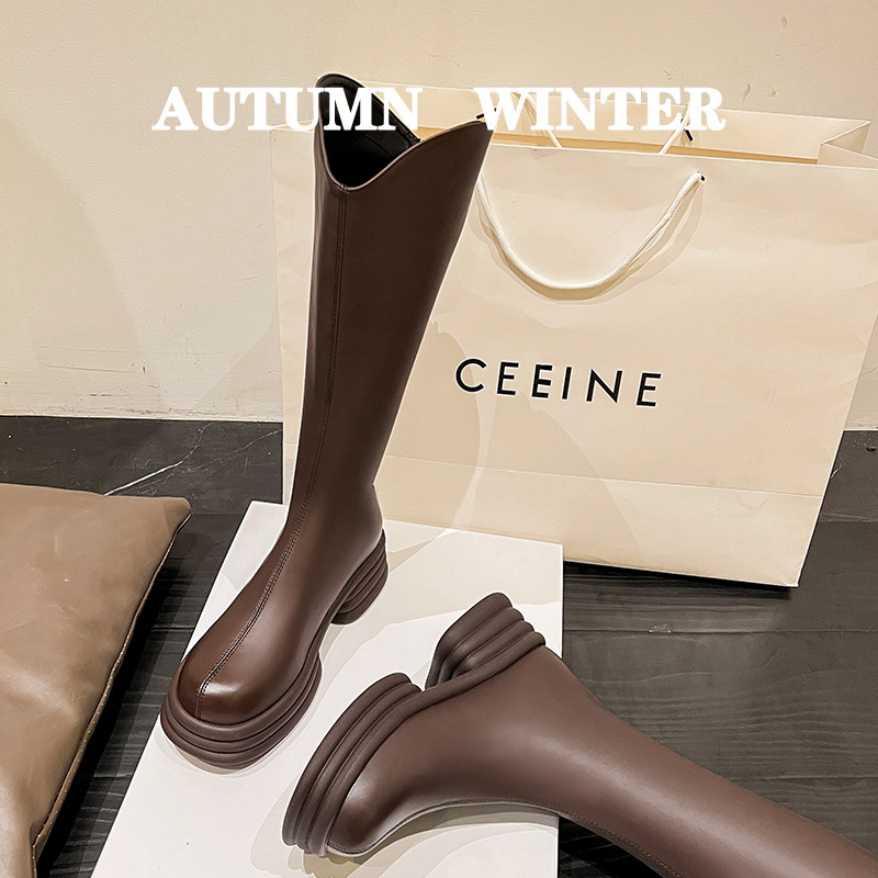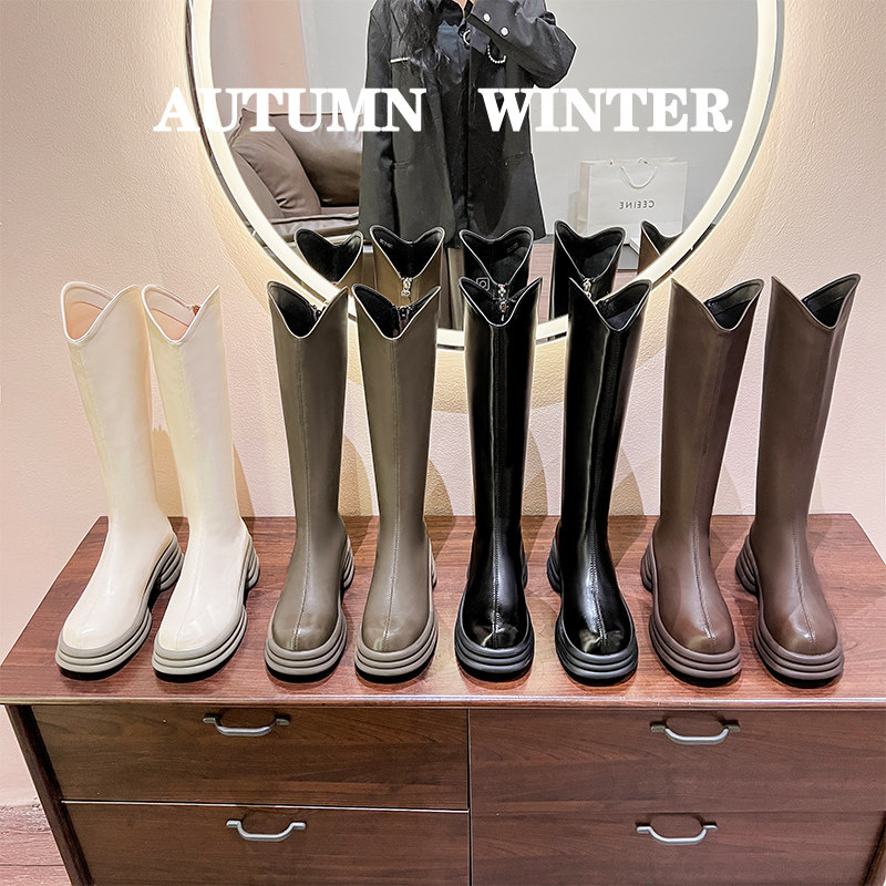 Демисезонные высокие сапоги, зимние ботинки на платформе, французский стиль