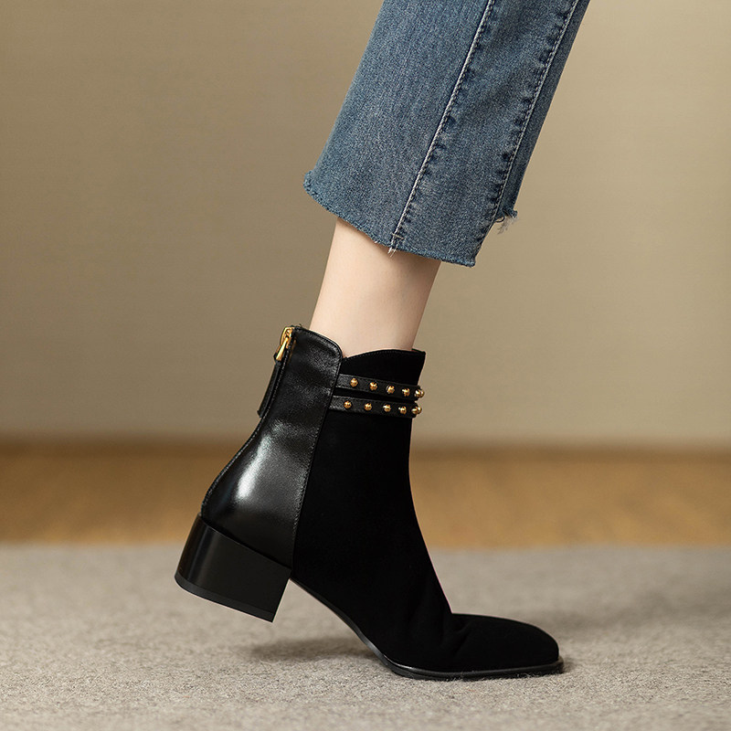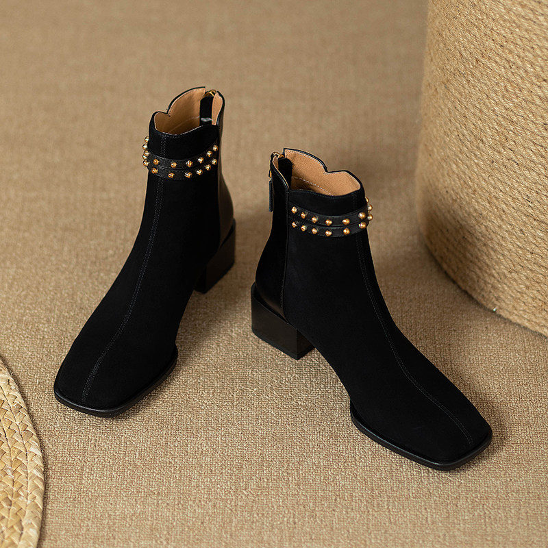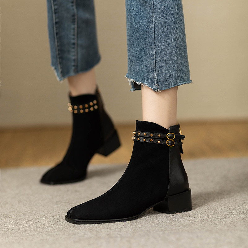 Матовые демисезонные челси, короткие сапоги, французский стиль, из натуральной кожи