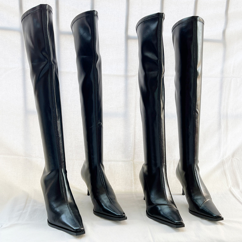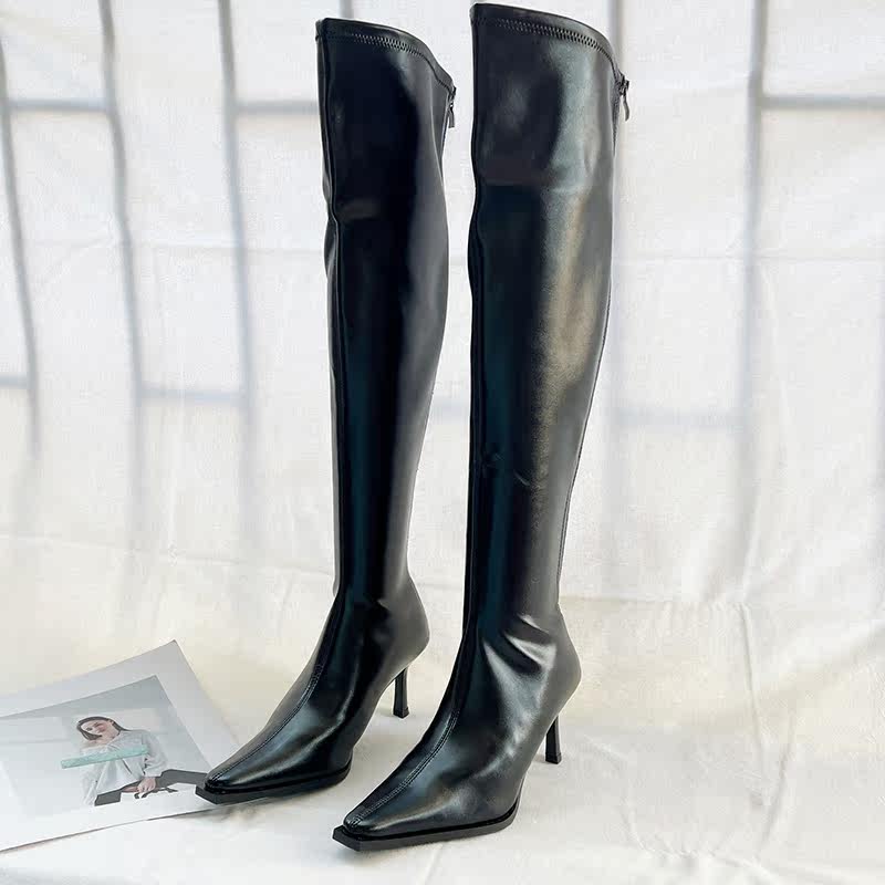 Демисезонные утепленные высокие высокие сапоги с заостренным носом с молнией, европейский стиль