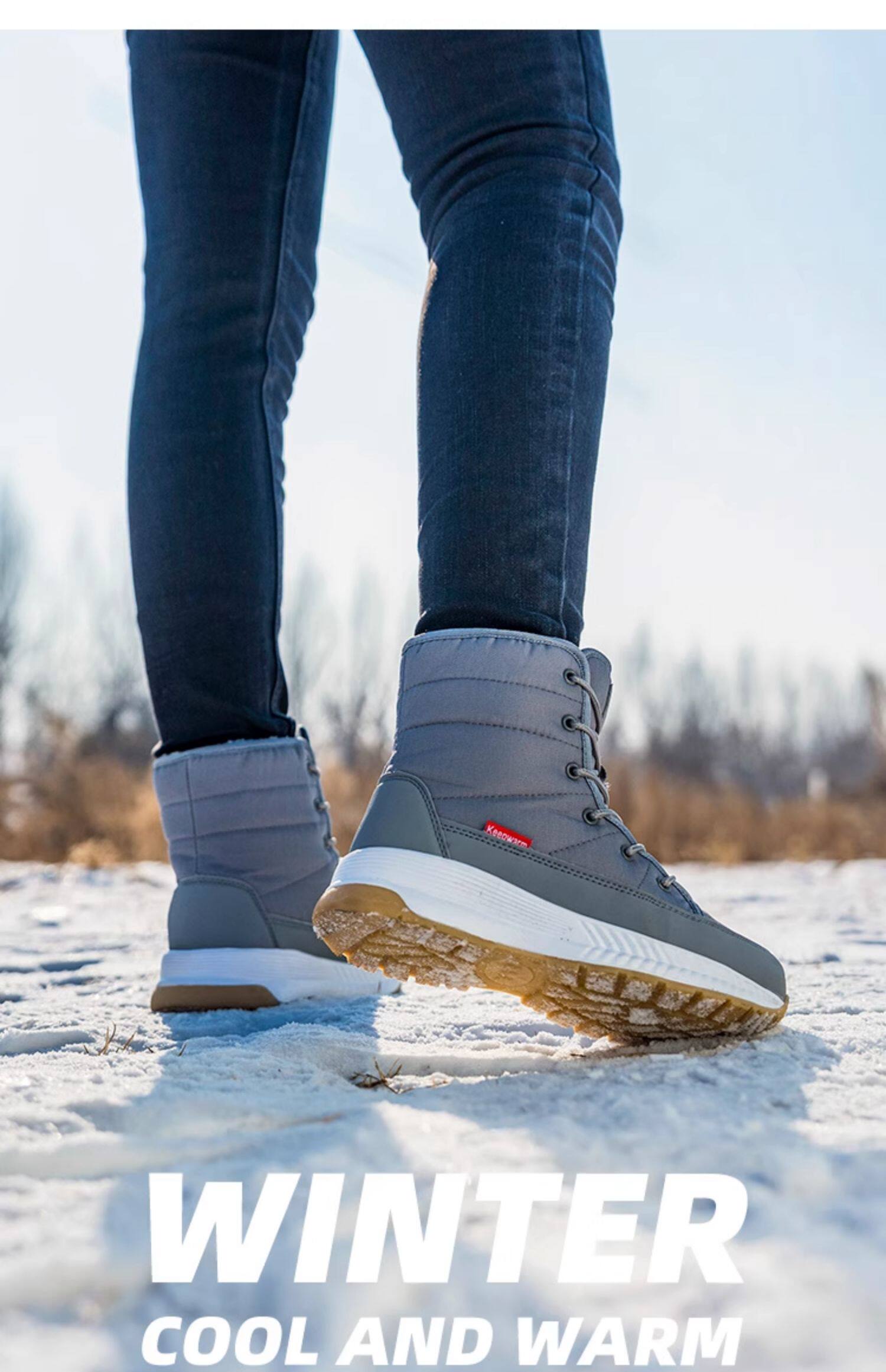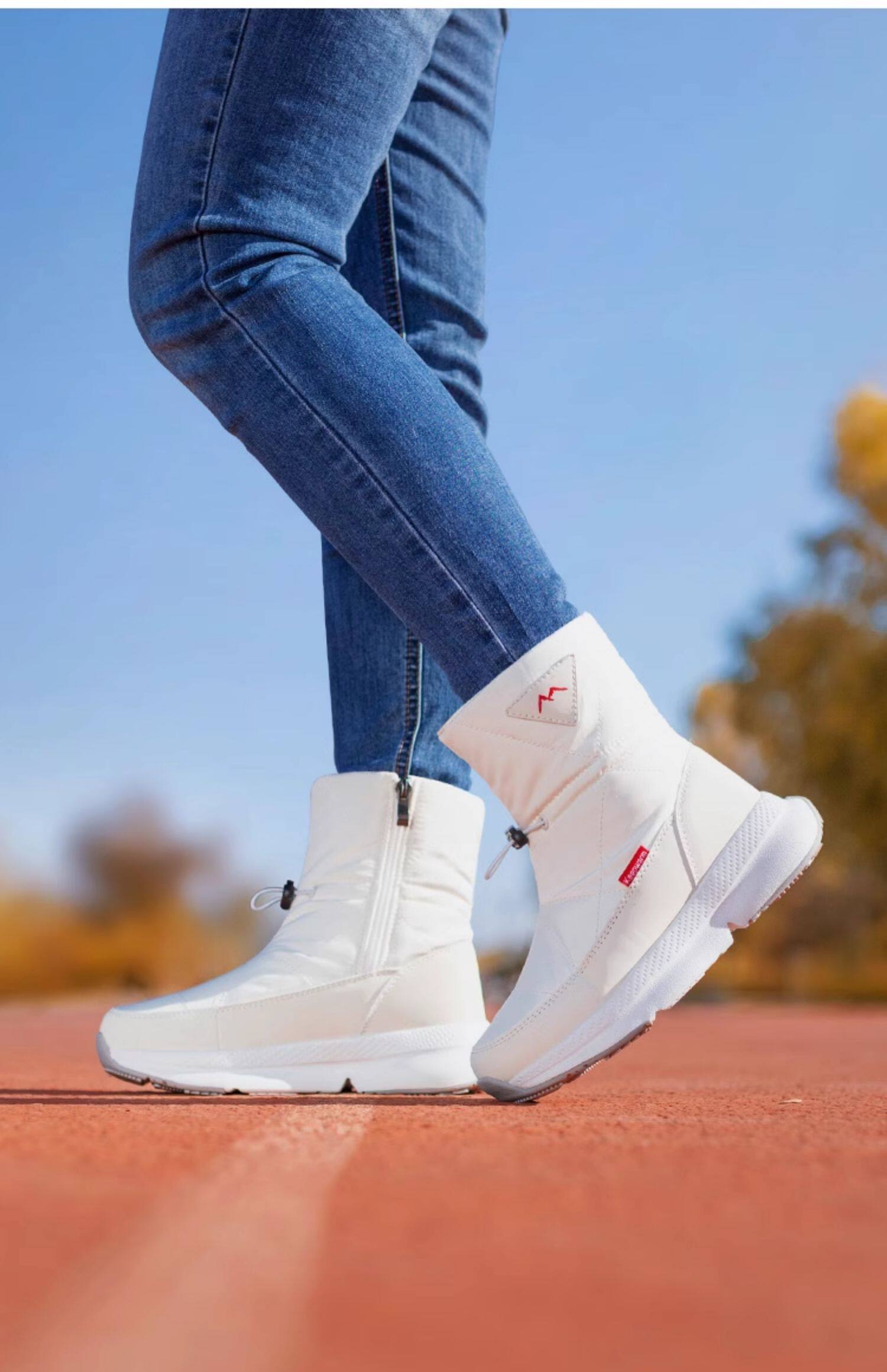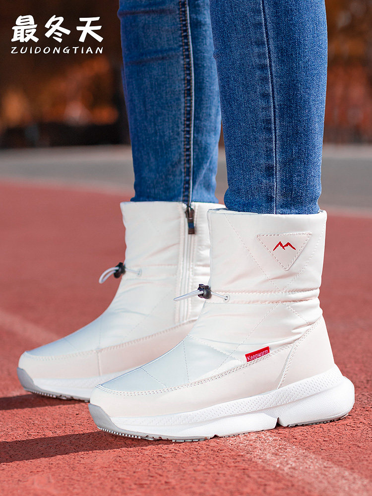 Покупка товаров: Утолщенные женские зимние ботинки Northeast, бархатные теплые белые ботинки, водонепроницаемые и нескользящие красочные зимние туфли до середины икры, большие хлопковые туфли.
