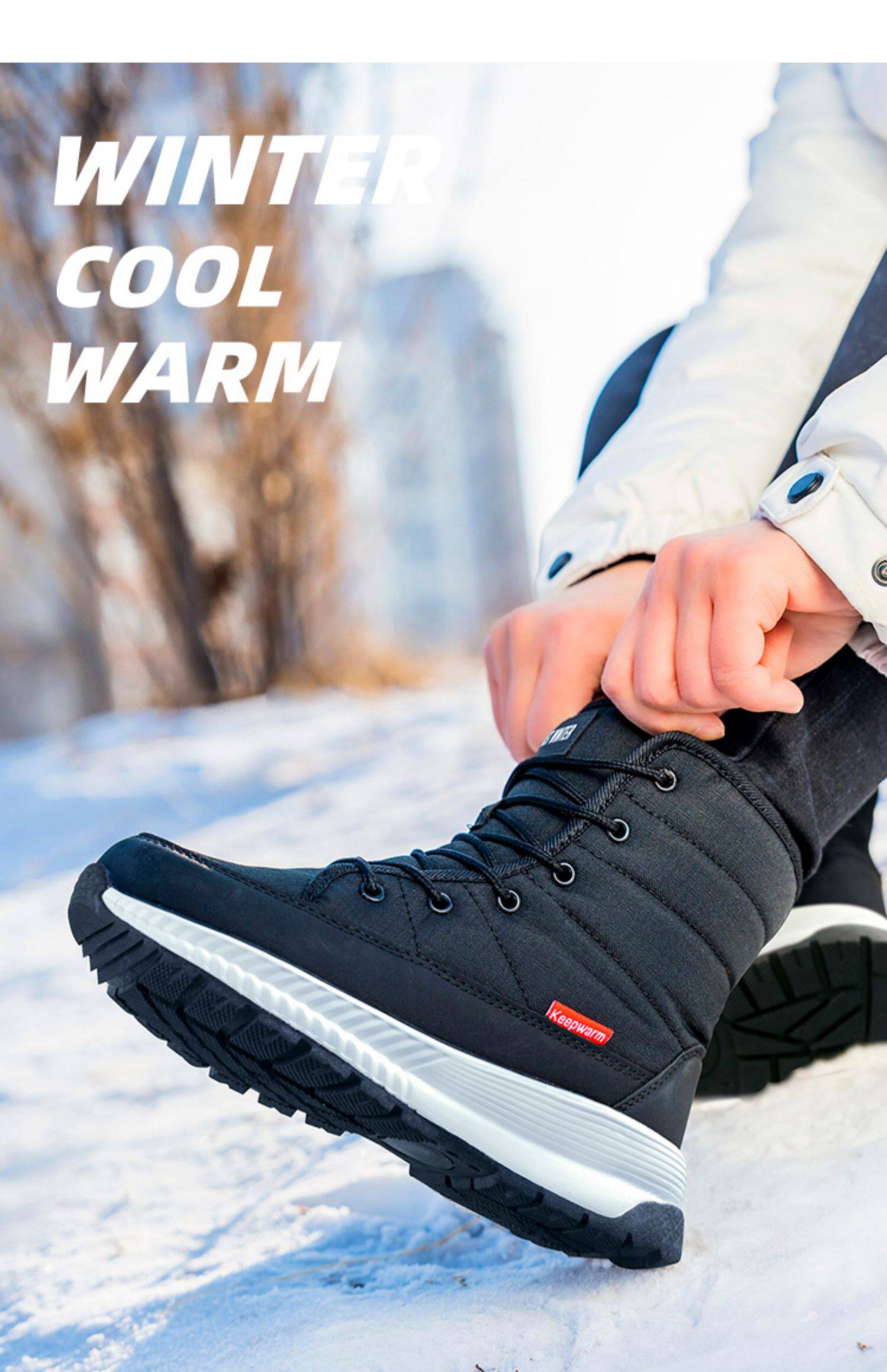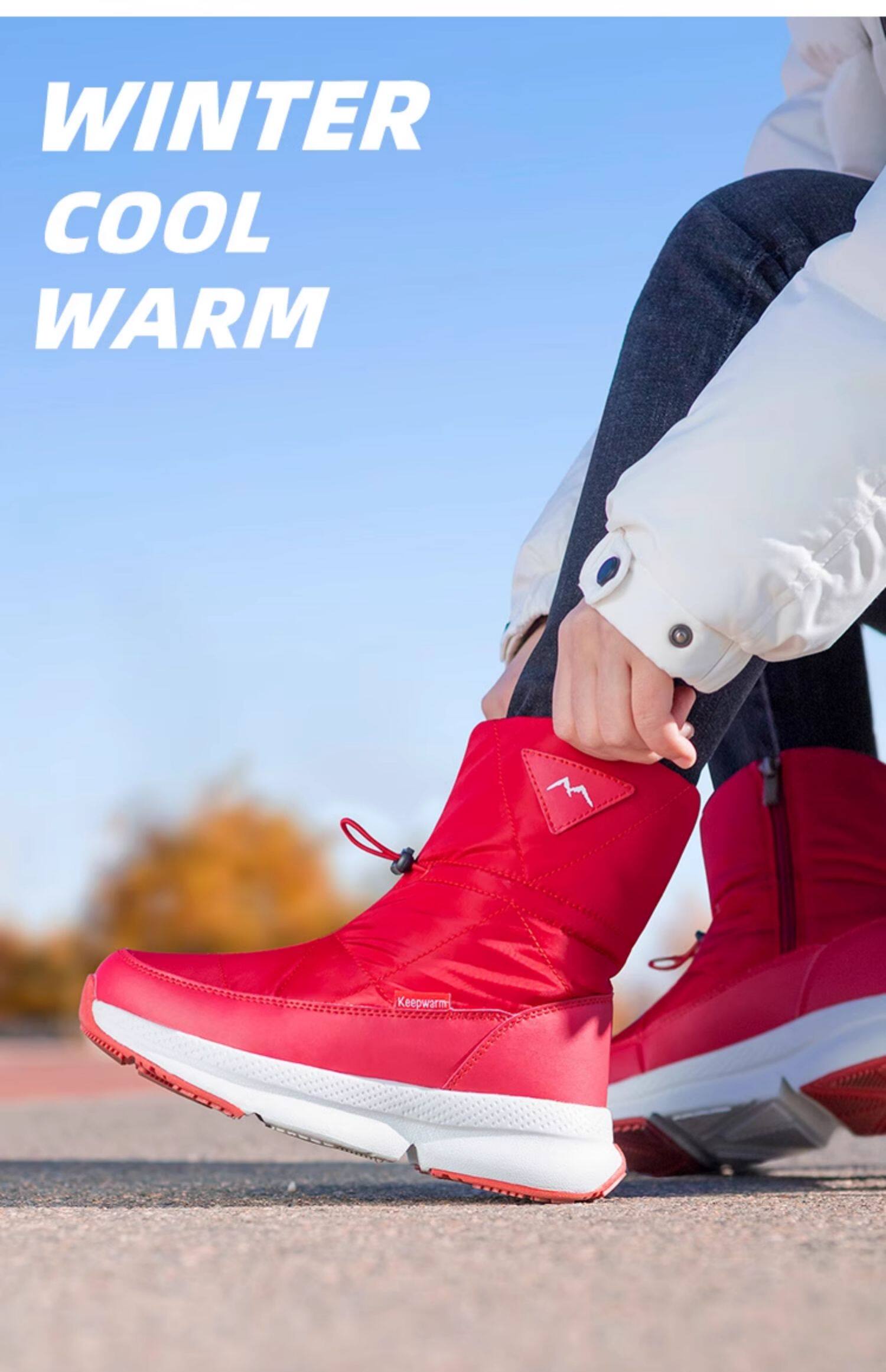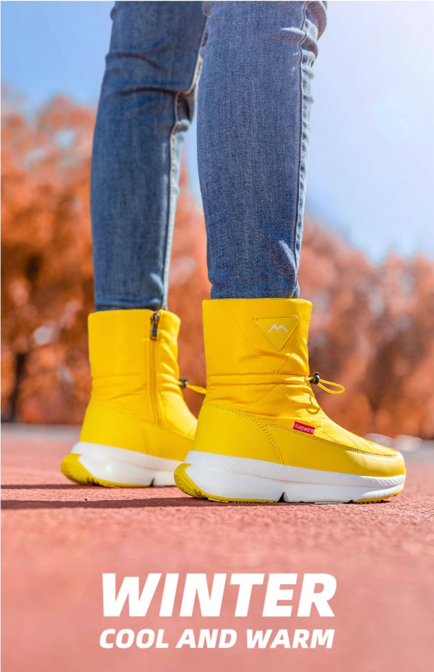 Покупка товаров: Утолщенные женские зимние ботинки Northeast, бархатные теплые белые ботинки, водонепроницаемые и нескользящие красочные зимние туфли до середины икры, большие хлопковые туфли.