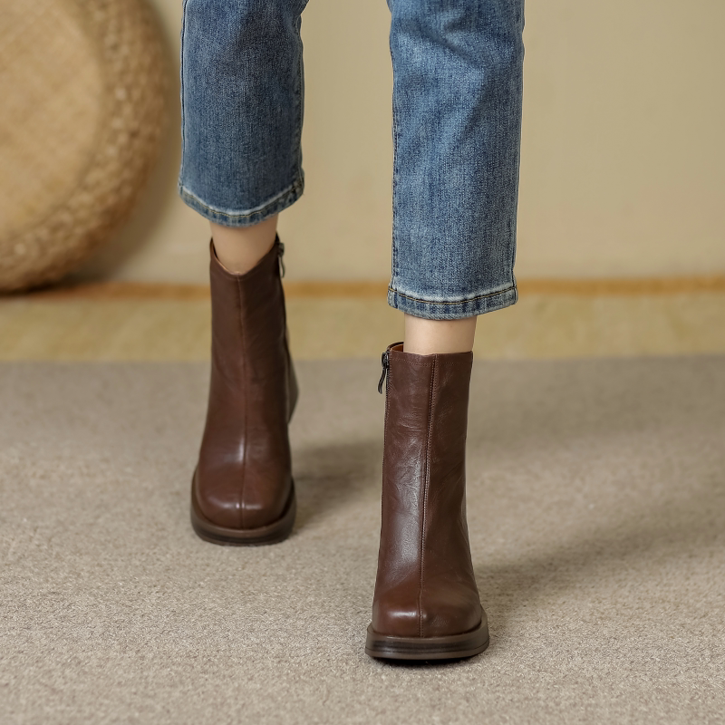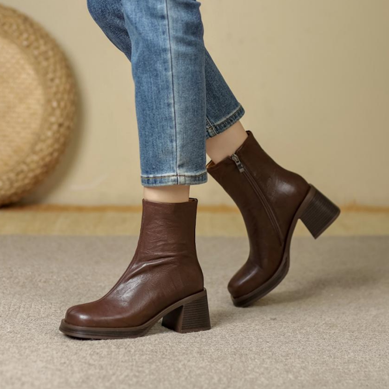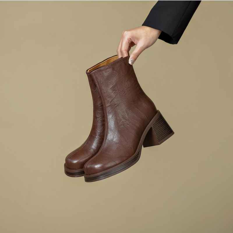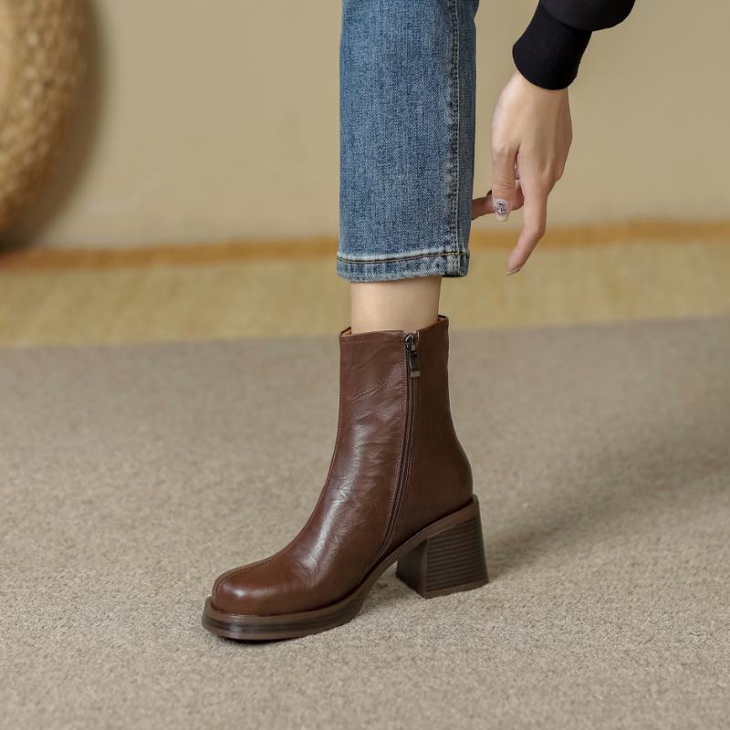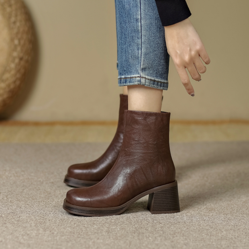 Короткие сапоги на платформе на высоком каблуке, 2024 года, французский стиль
