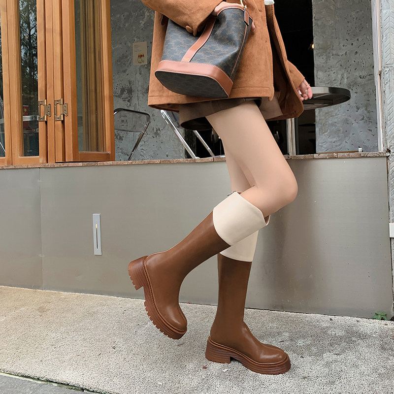 Высокие сапоги на платформе, ботинки, подходит для подростков, из натуральной кожи
