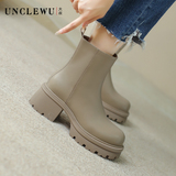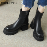 穿高跟鞋的吴大叔 Martens, демисезонные кожаные короткие сапоги на платформе, ботильоны, ботинки, воловья кожа