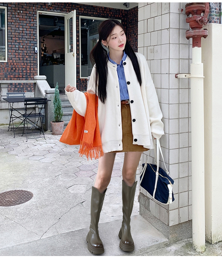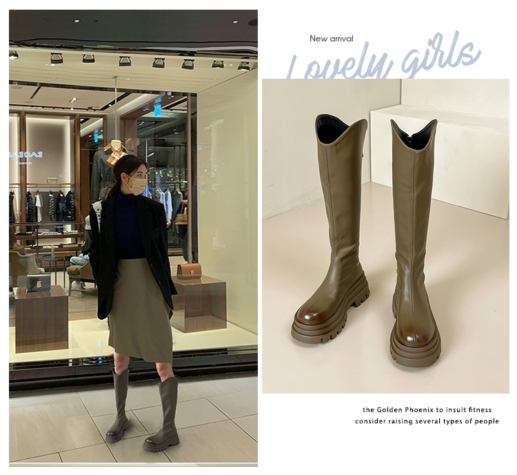Ботинки, демисезонные высокие высокие сапоги на платформе, 2024 года, по фигуре