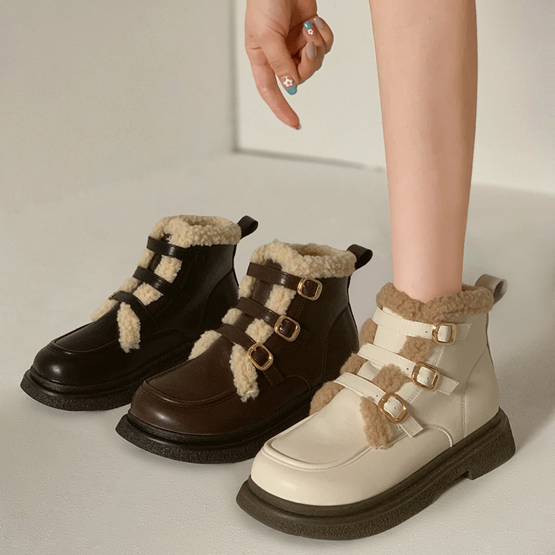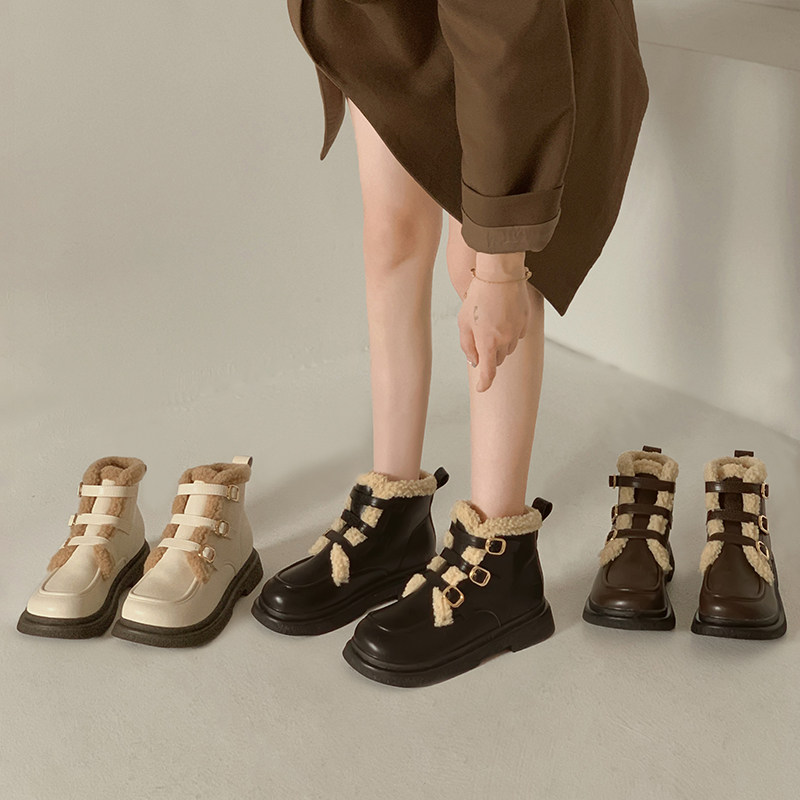 Martens, ботинки, зимние флисовые удерживающие тепло короткие сапоги, 2022 года, в западном стиле