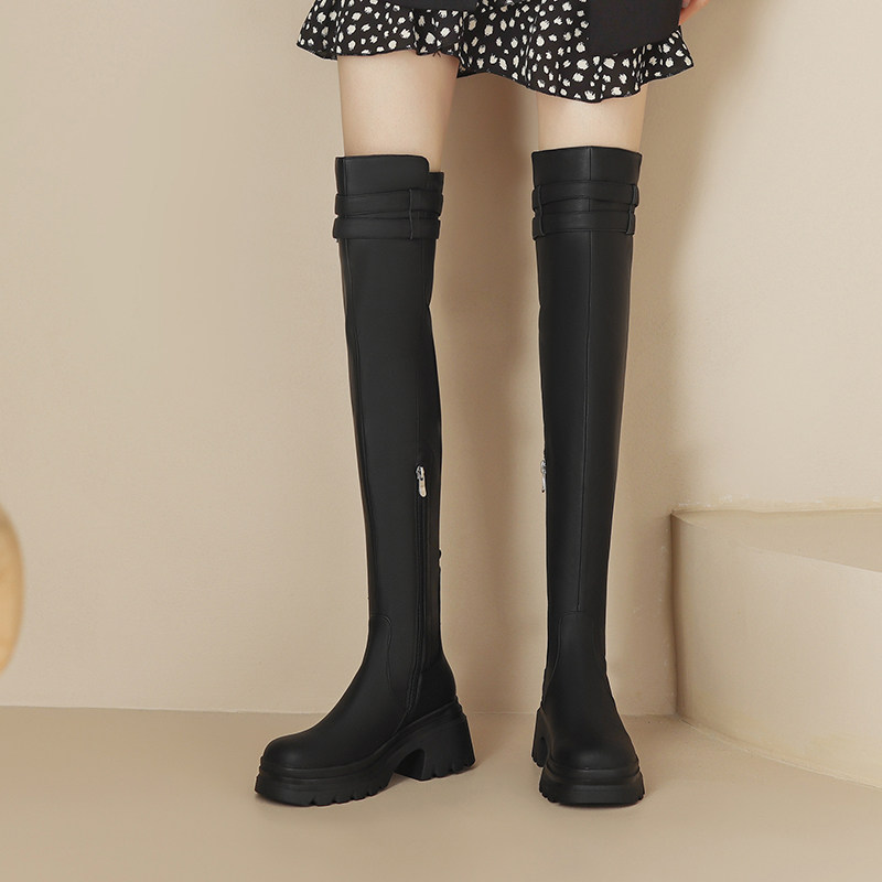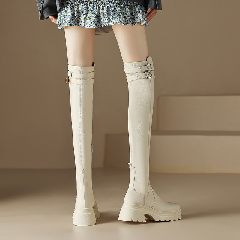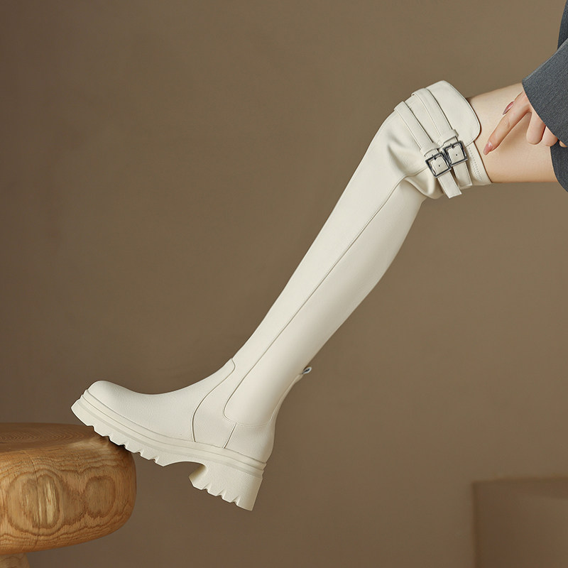 Белый демисезонный ремень на платформе, пряжка, высокие сапоги, коллекция 2022, подходит для подростков, по фигуре
