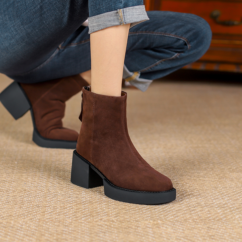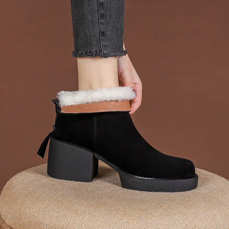 Зимняя утепленная универсальная обувь, короткие сапоги, высокие модные ботинки, из натуральной кожи