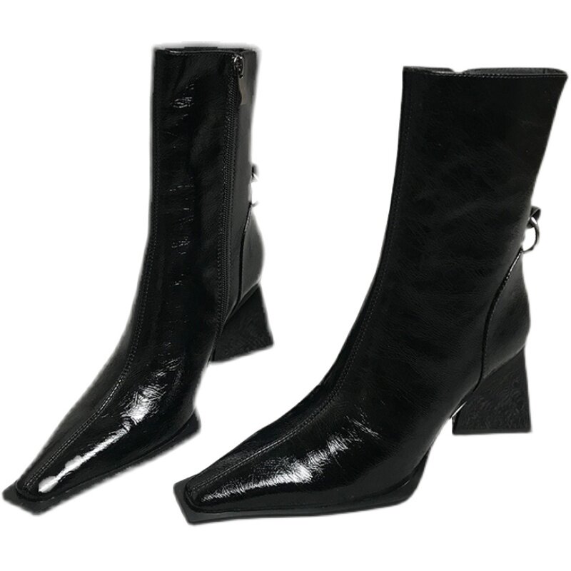 Martens, демисезонные короткие сапоги на высоком каблуке