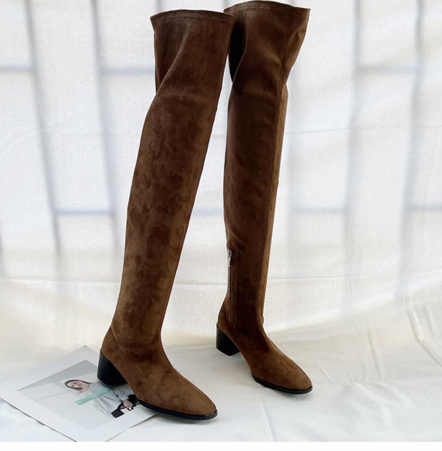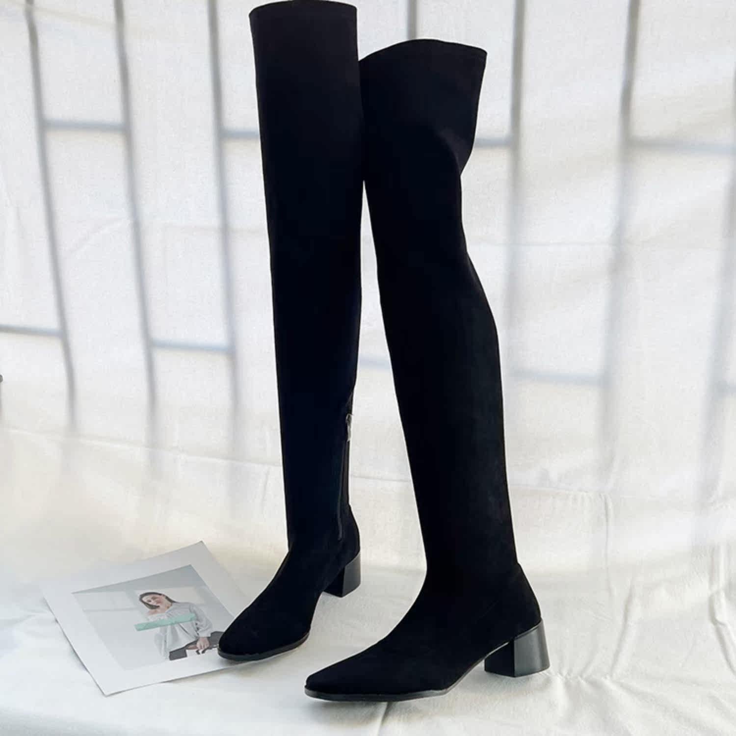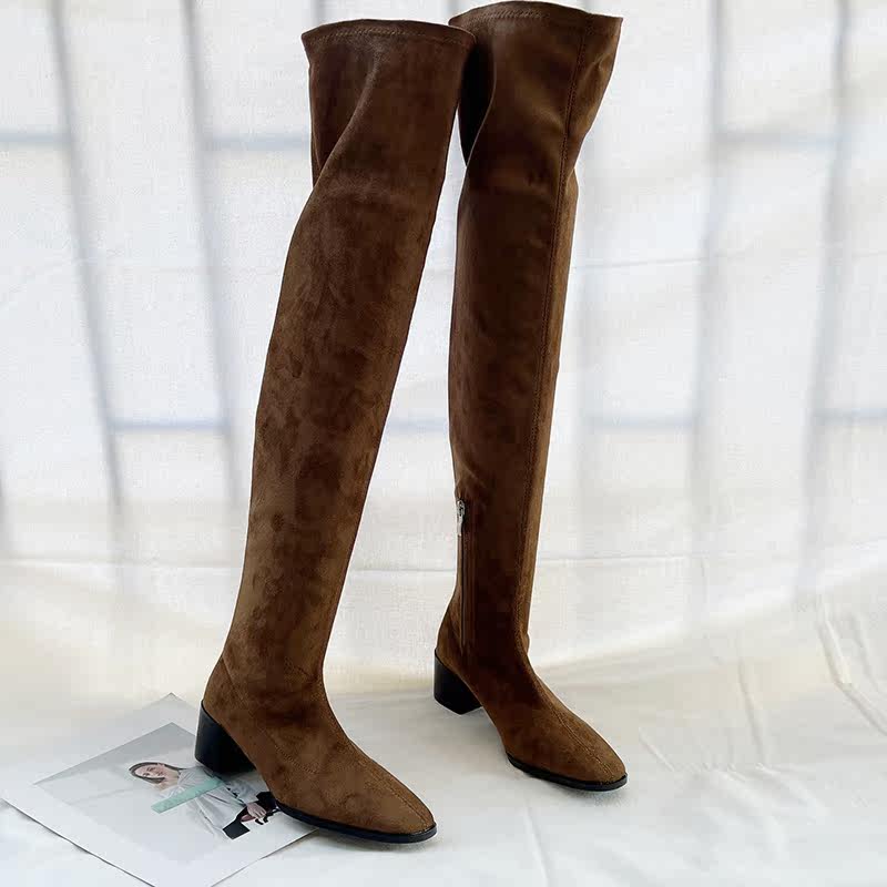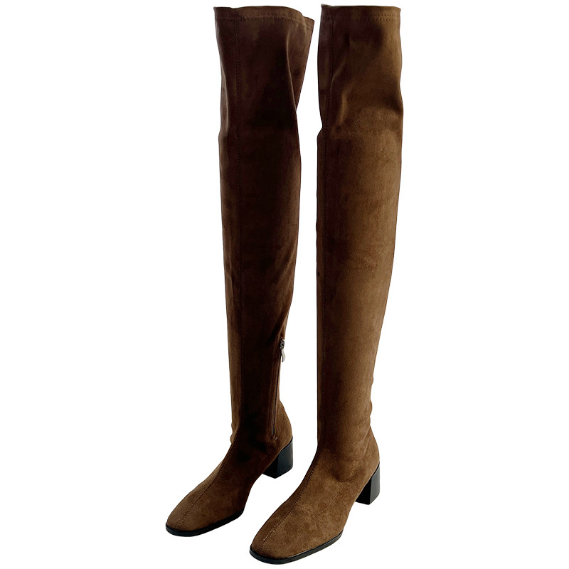 Замшевые сверхдлинные демисезонные высокие сапоги, эластичные ботинки, европейский стиль