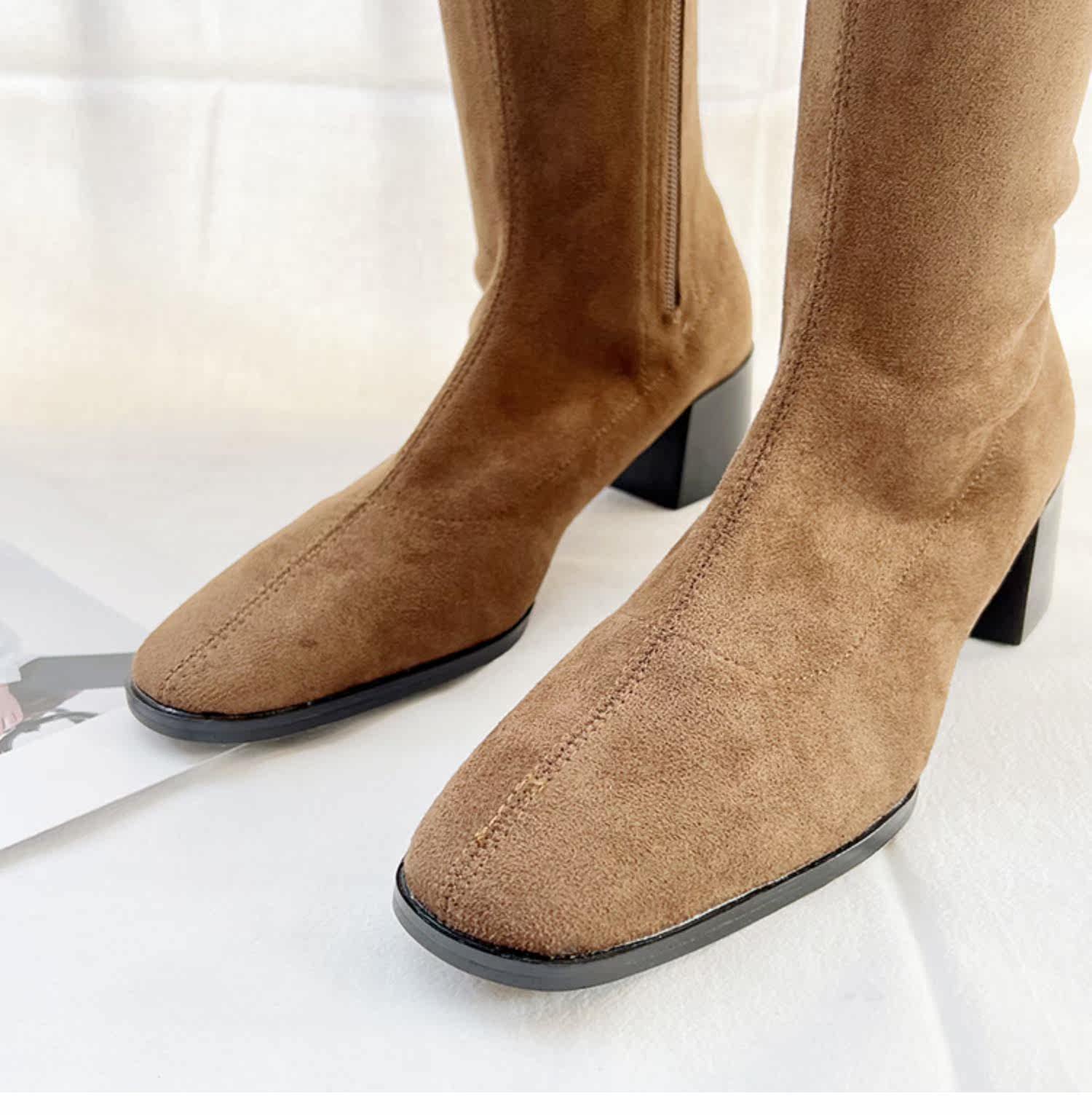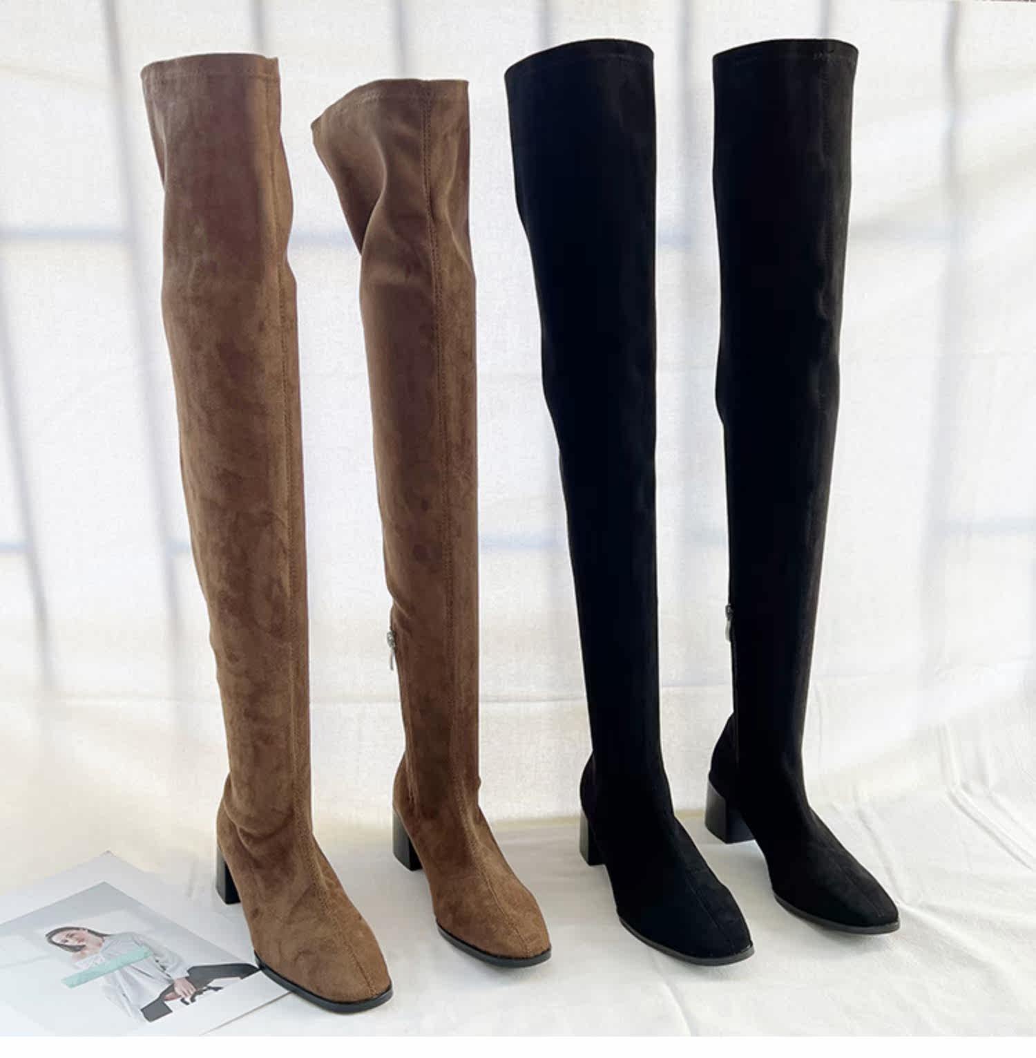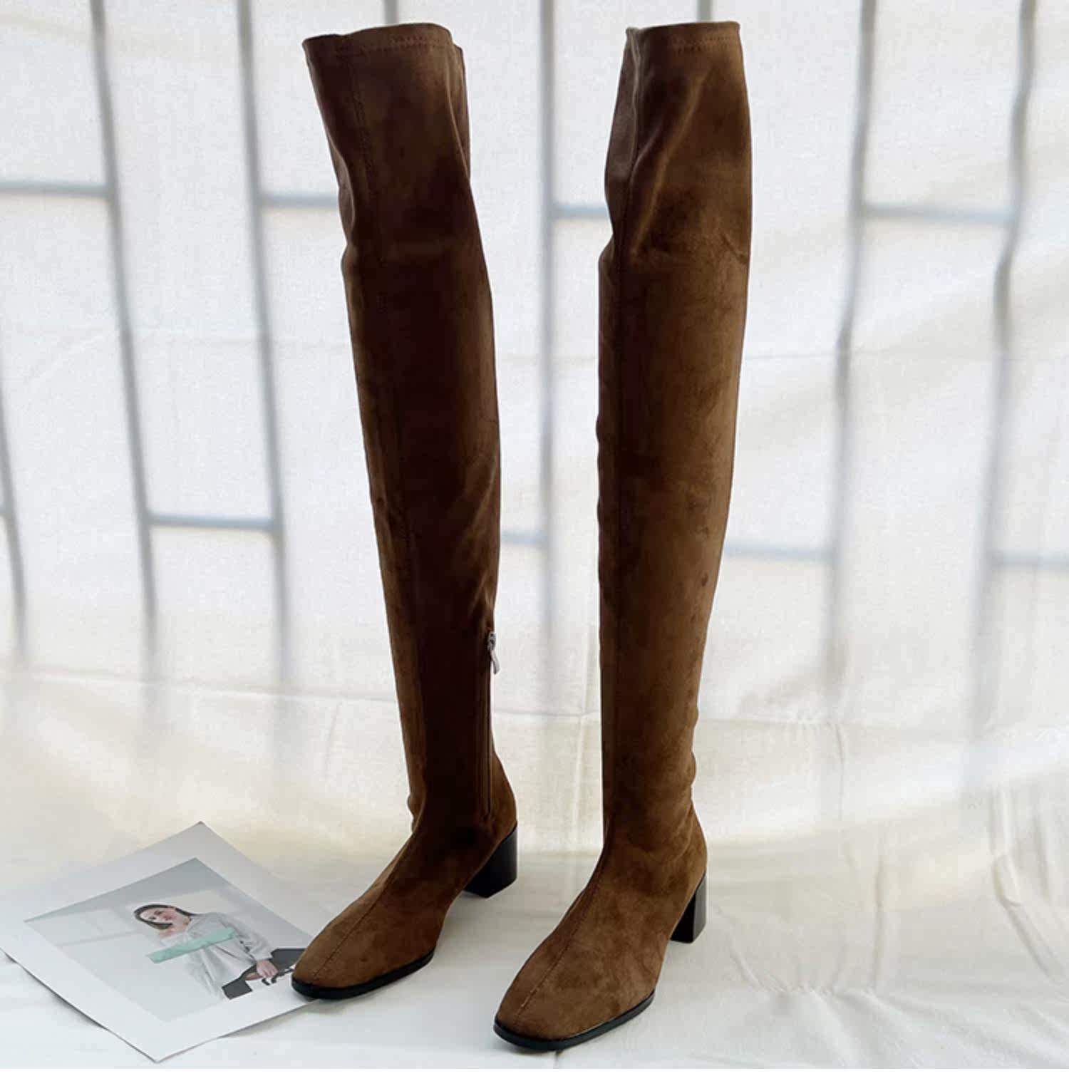 Замшевые сверхдлинные демисезонные высокие сапоги, эластичные ботинки, европейский стиль