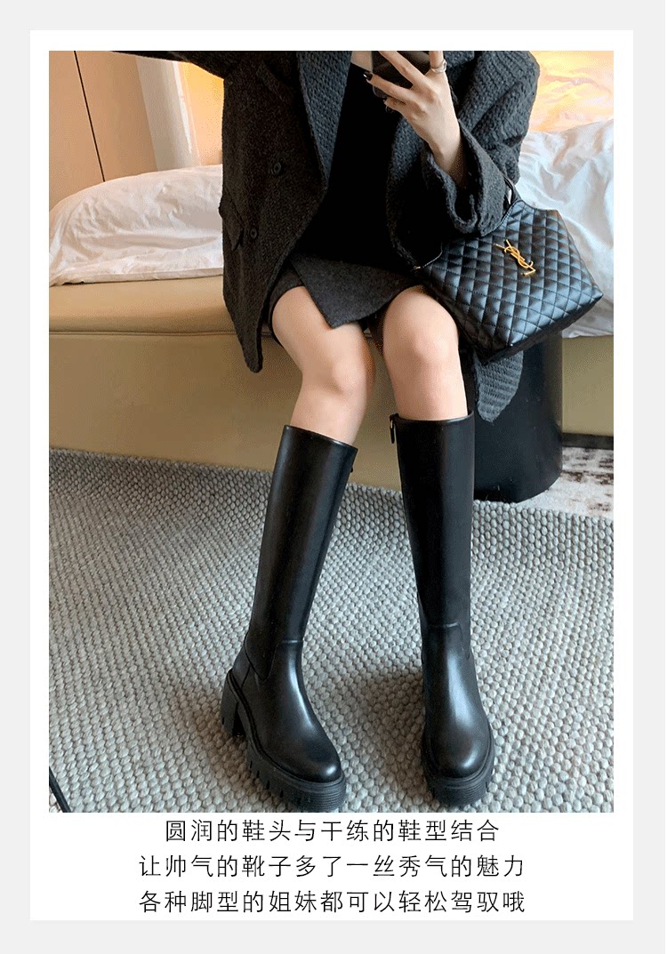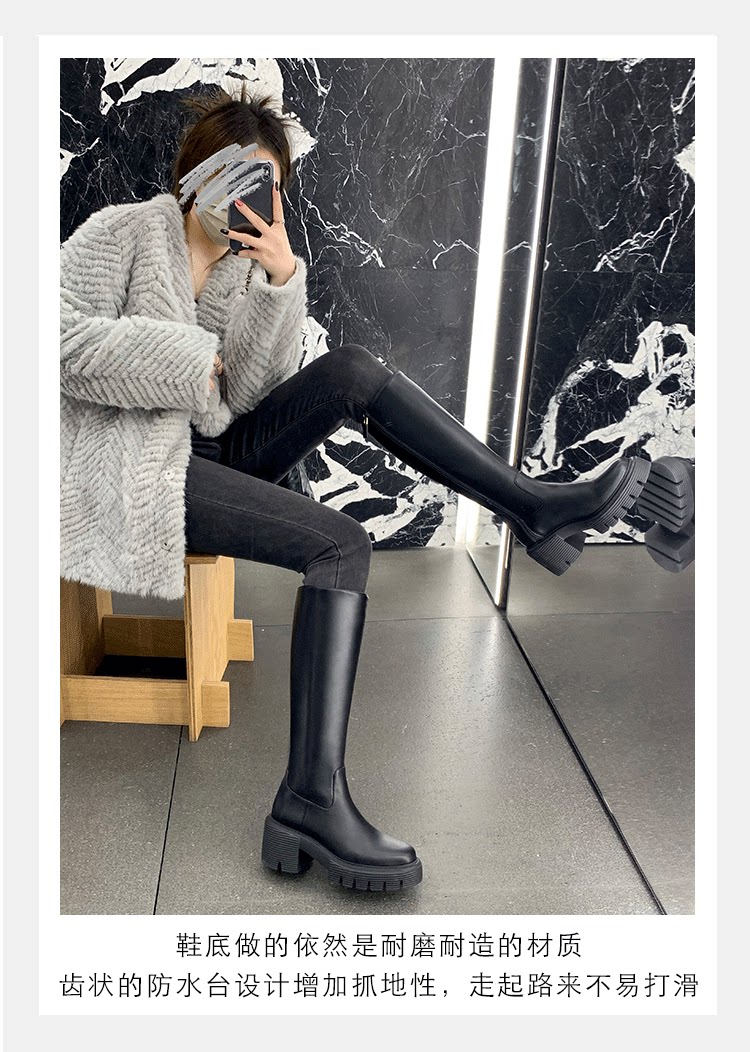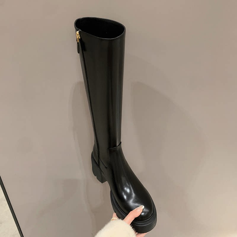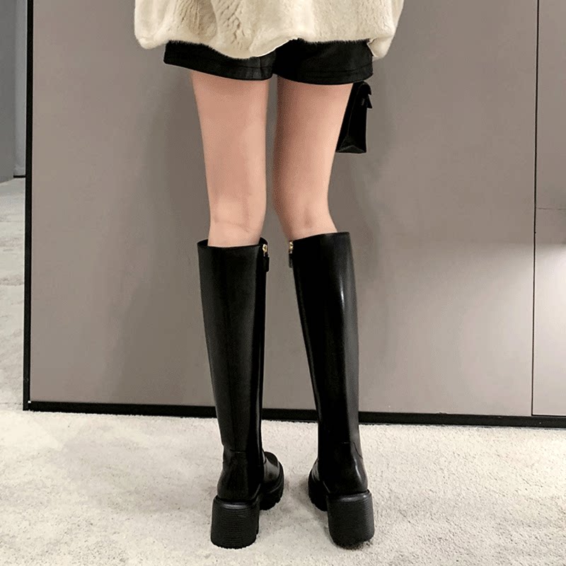 Флисовые высокие высокие сапоги в английском стиле на платформе, из натуральной кожи, стройный силуэт
