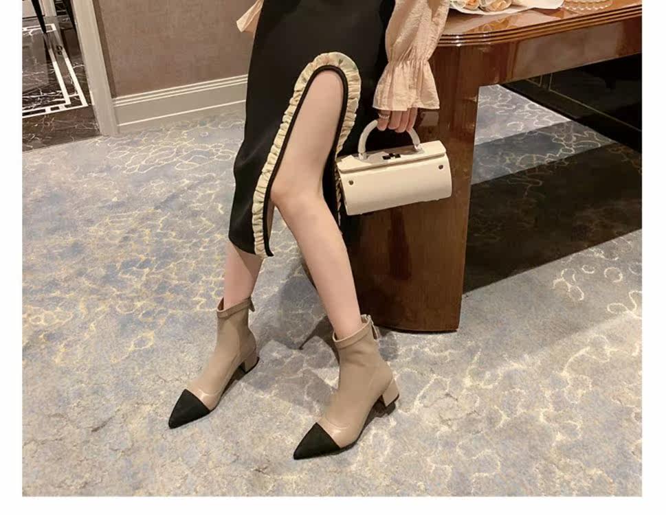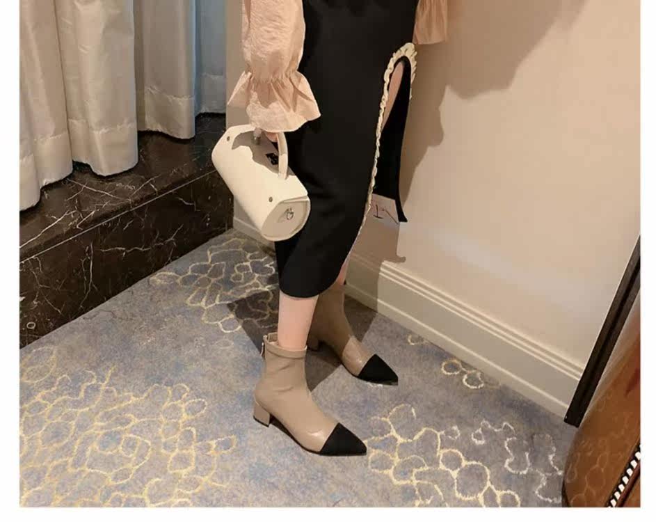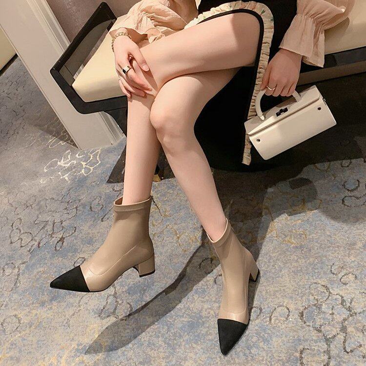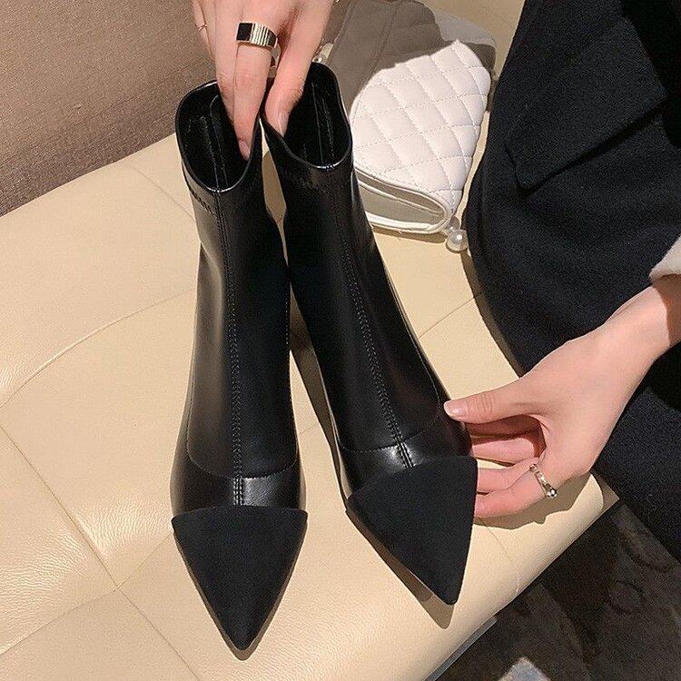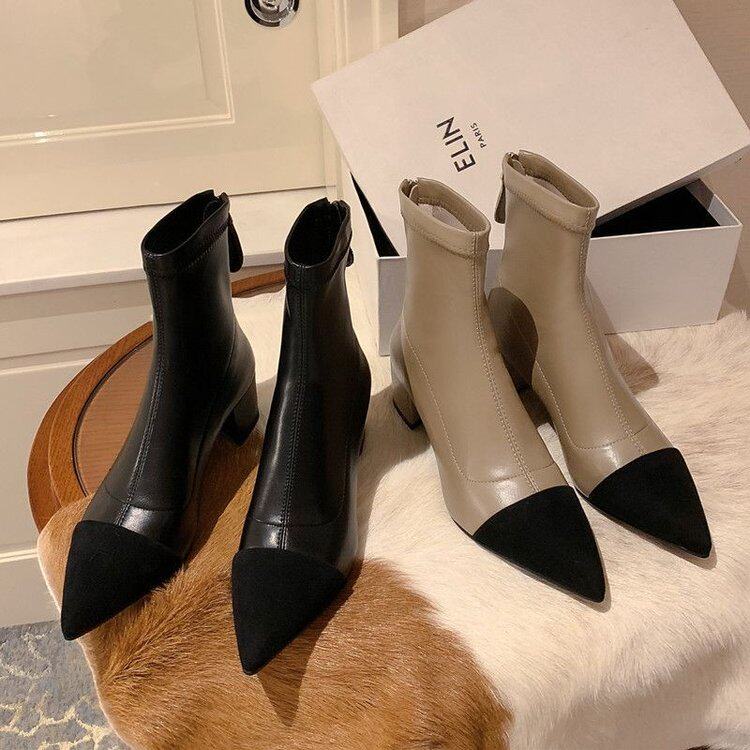 Демисезонные короткие сапоги с заостренным носом, из натуральной кожи, французский стиль, в стиле Шанель