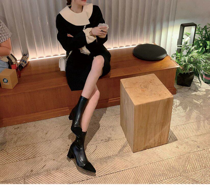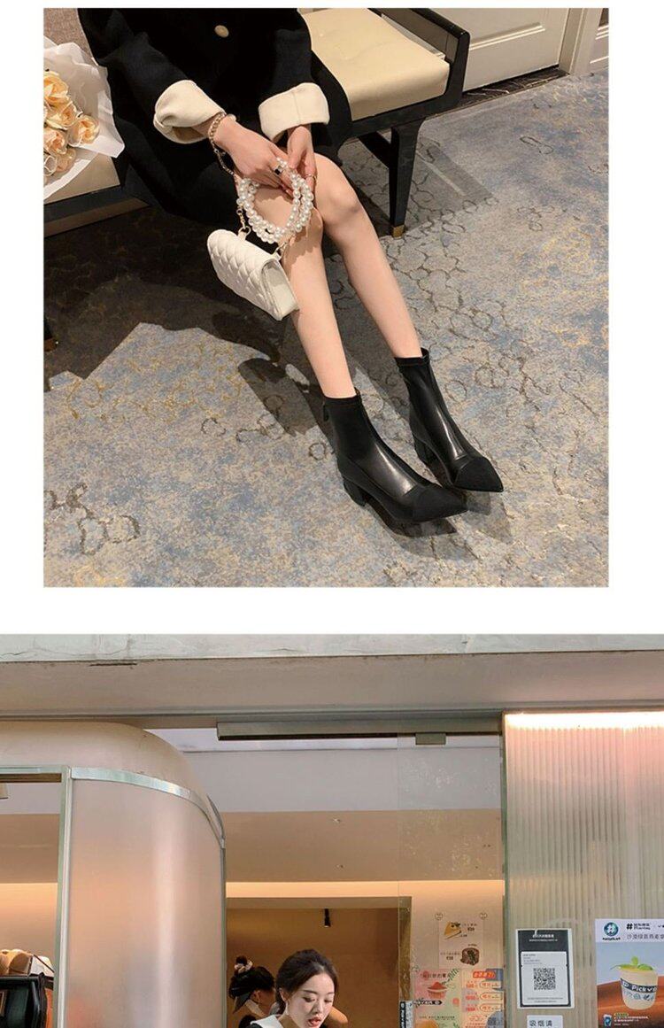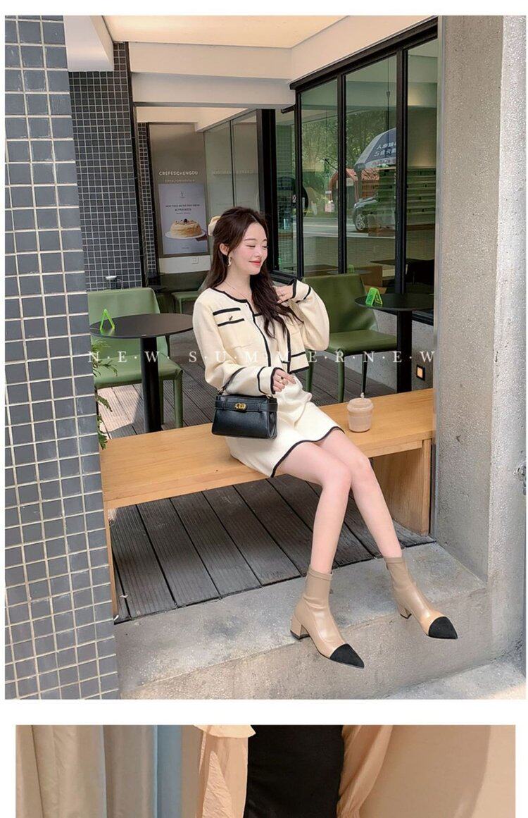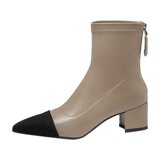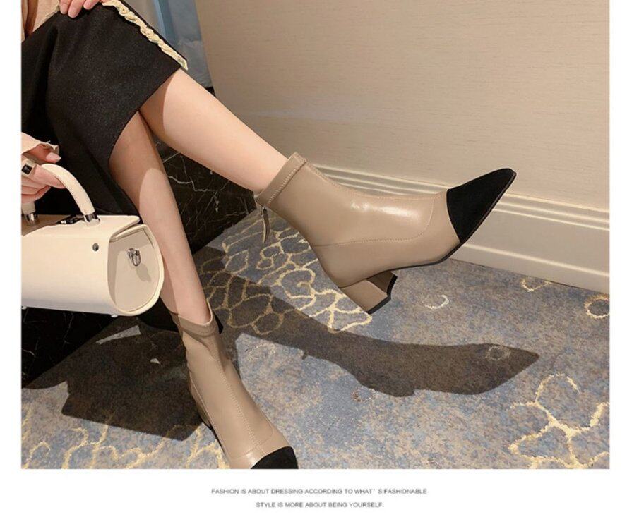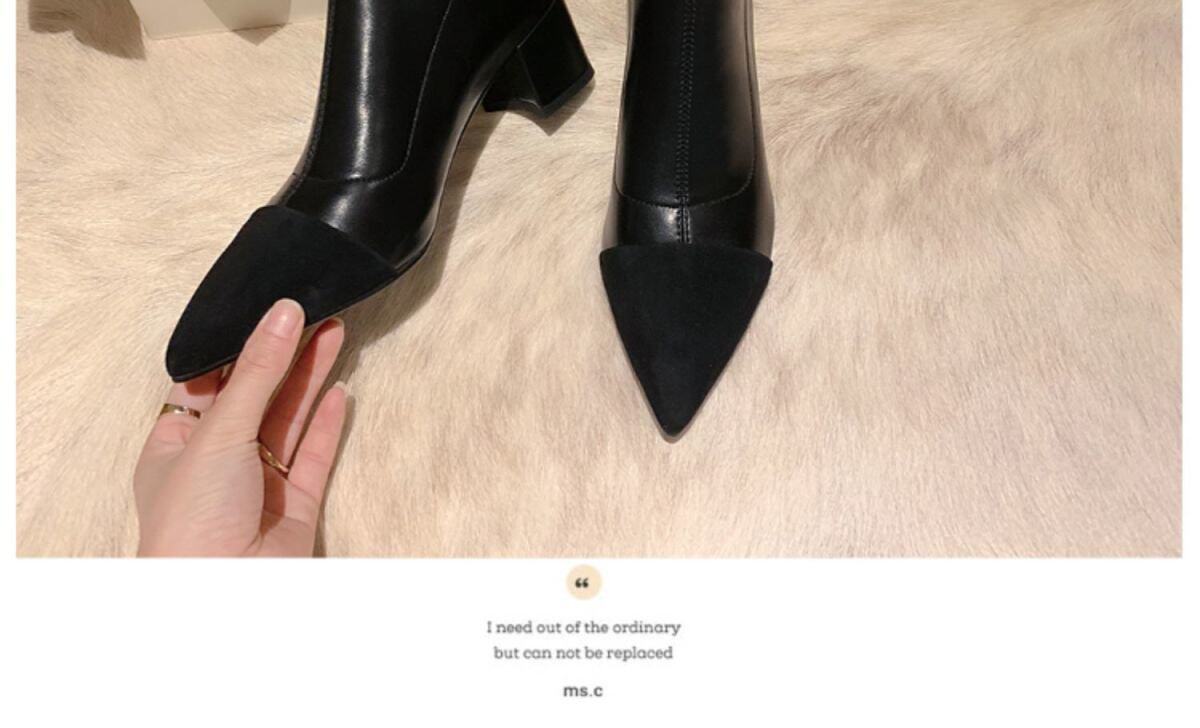 Демисезонные короткие сапоги с заостренным носом, из натуральной кожи, французский стиль, в стиле Шанель