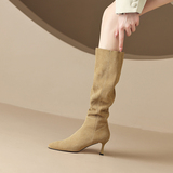 Матовые джинсовые сапоги на высоком каблуке с заостренным носом, из натуральной кожи, коллекция 2022