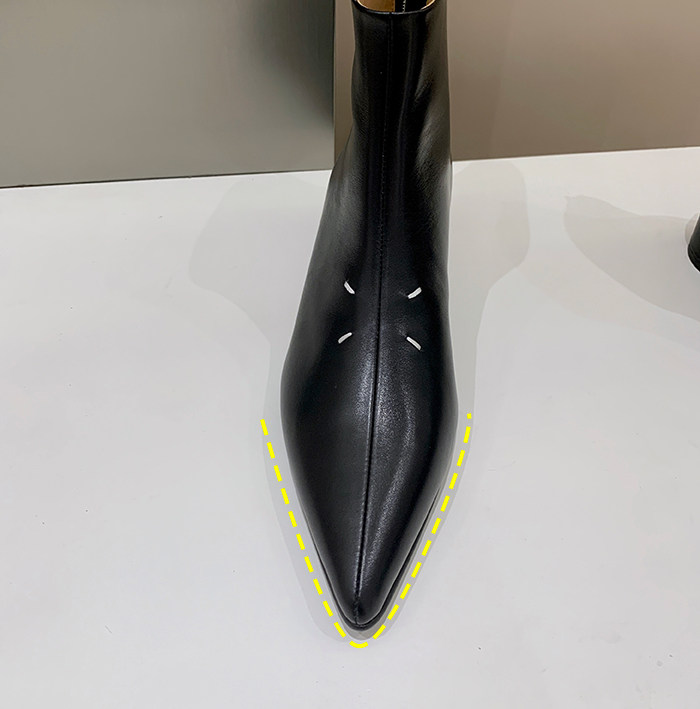 Дизайн сплит-линии в середине квадрата, простирающийся от ноги до бочки для ботинок