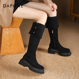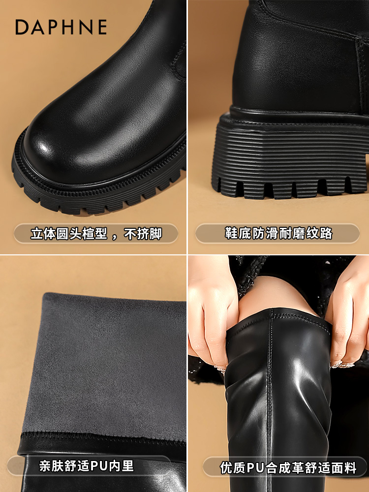 Женские сапоги выше колена Daphne, новинка 2024 года, осенние черные кожаные сапоги, сапоги на шерстяной подкладке, женские рыцарские сапоги на толстой подошве