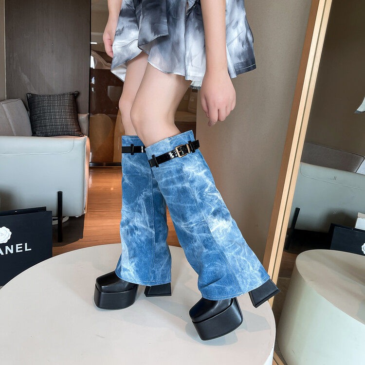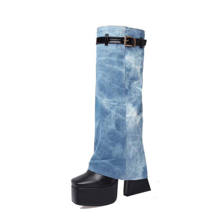 Джинсовые зимние утепленные штаны, высокие сапоги
