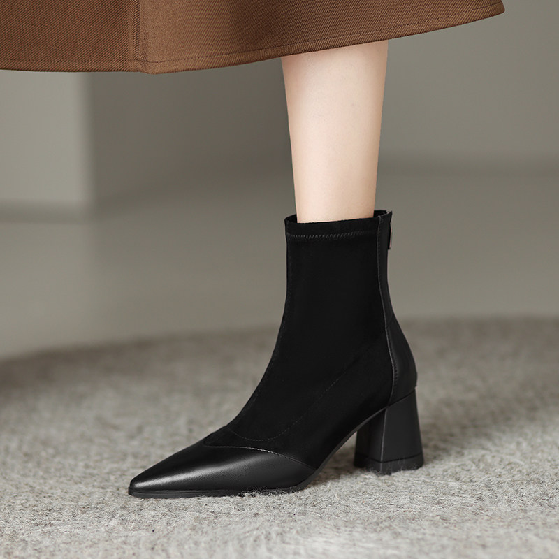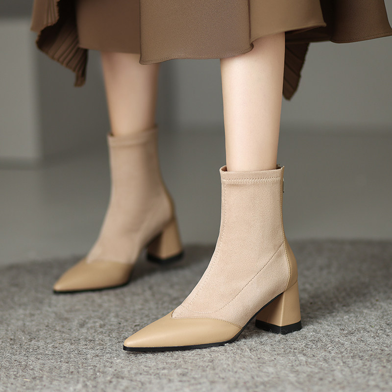 Короткие сапоги, демисезонные ботильоны, абрикосовые ботинки с заостренным носом, обувь на высоком каблуке, французский стиль