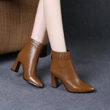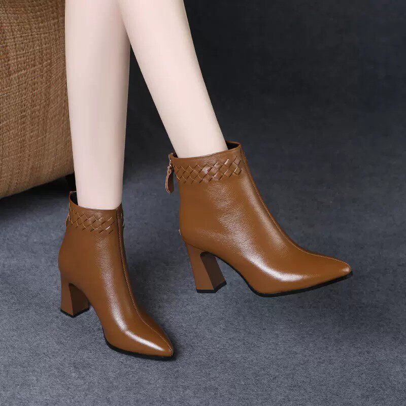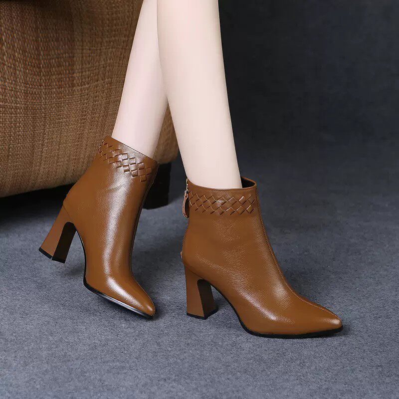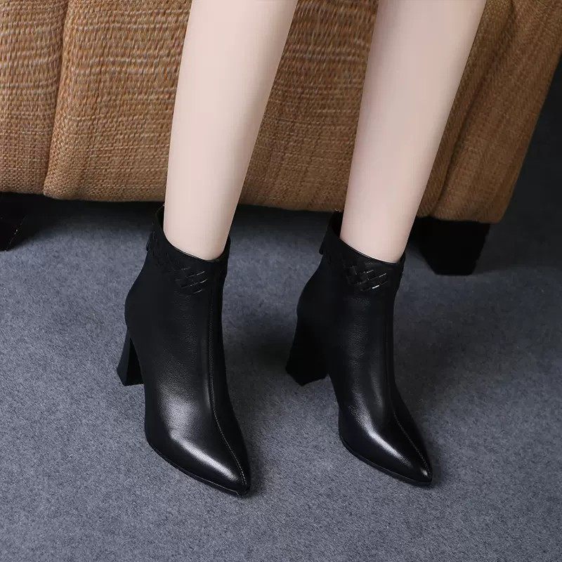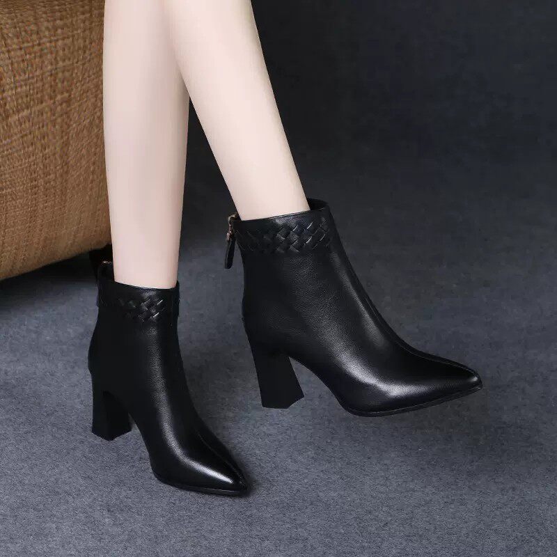 Martens, весенняя демисезонная обувь с заостренным носом на высоком каблуке, демисезонные короткие сапоги, ботинки, из натуральной кожи