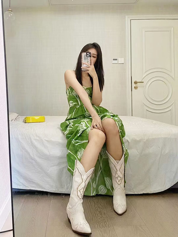 Джинсовые сапоги, коллекция 2022, европейский стиль, с вышивкой