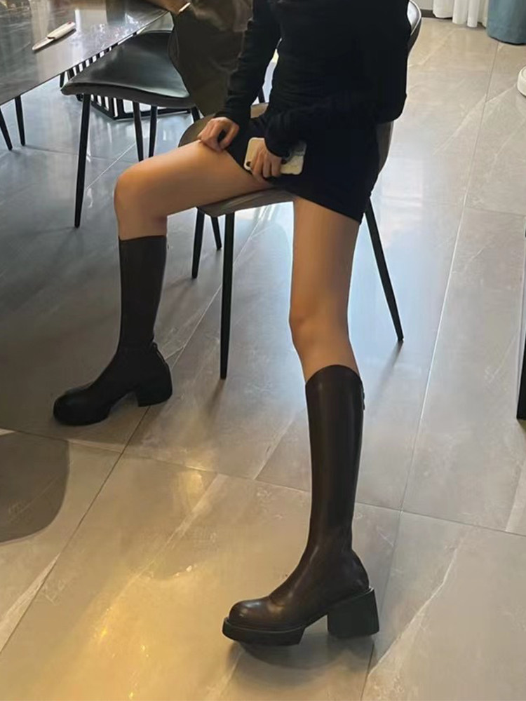Коричневые ботинки, демисезонные высокие сапоги на платформе, коллекция 2022