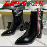 Кожаные флисовые туфли, модные короткие сапоги с заостренным носом, ботинки, из натуральной кожи, коллекция 2022