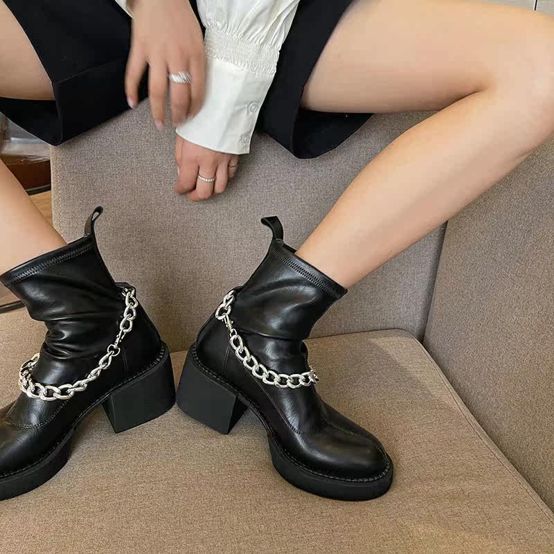 Martens, демисезонные черные короткие сапоги на платформе, цепь, ботинки, коллекция 2023