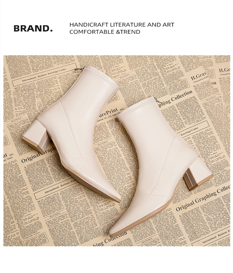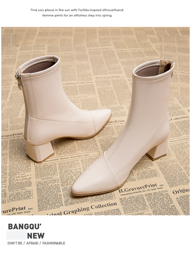 Демисезонные короткие сапоги с заостренным носом, белые высокие ботинки, в западном стиле
