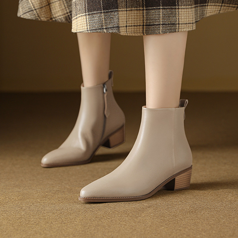 Martens, зимние короткие сапоги с заостренным носом в английском стиле, из натуральной кожи, французский стиль, изысканный стиль, коллекция 2022, в британском стиле