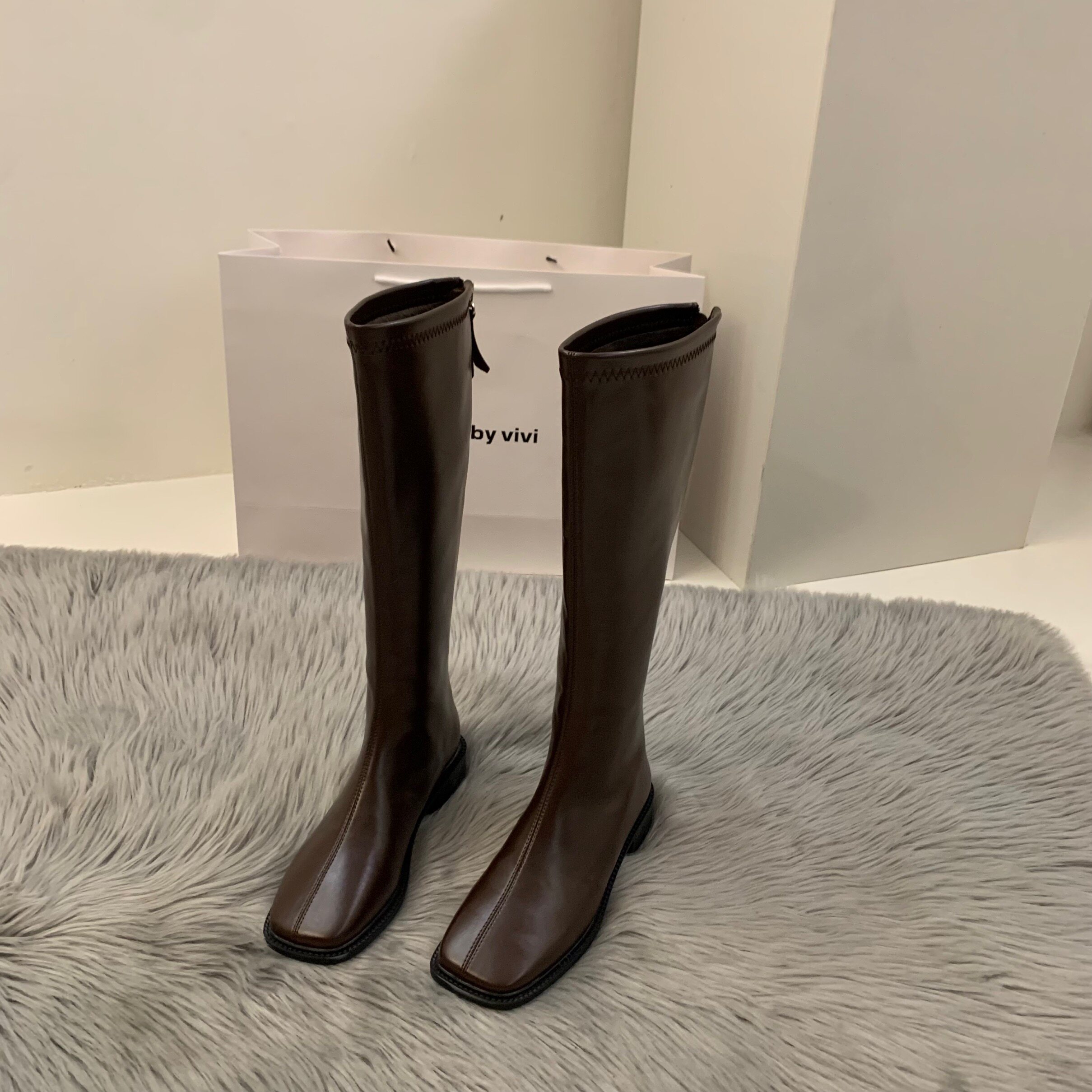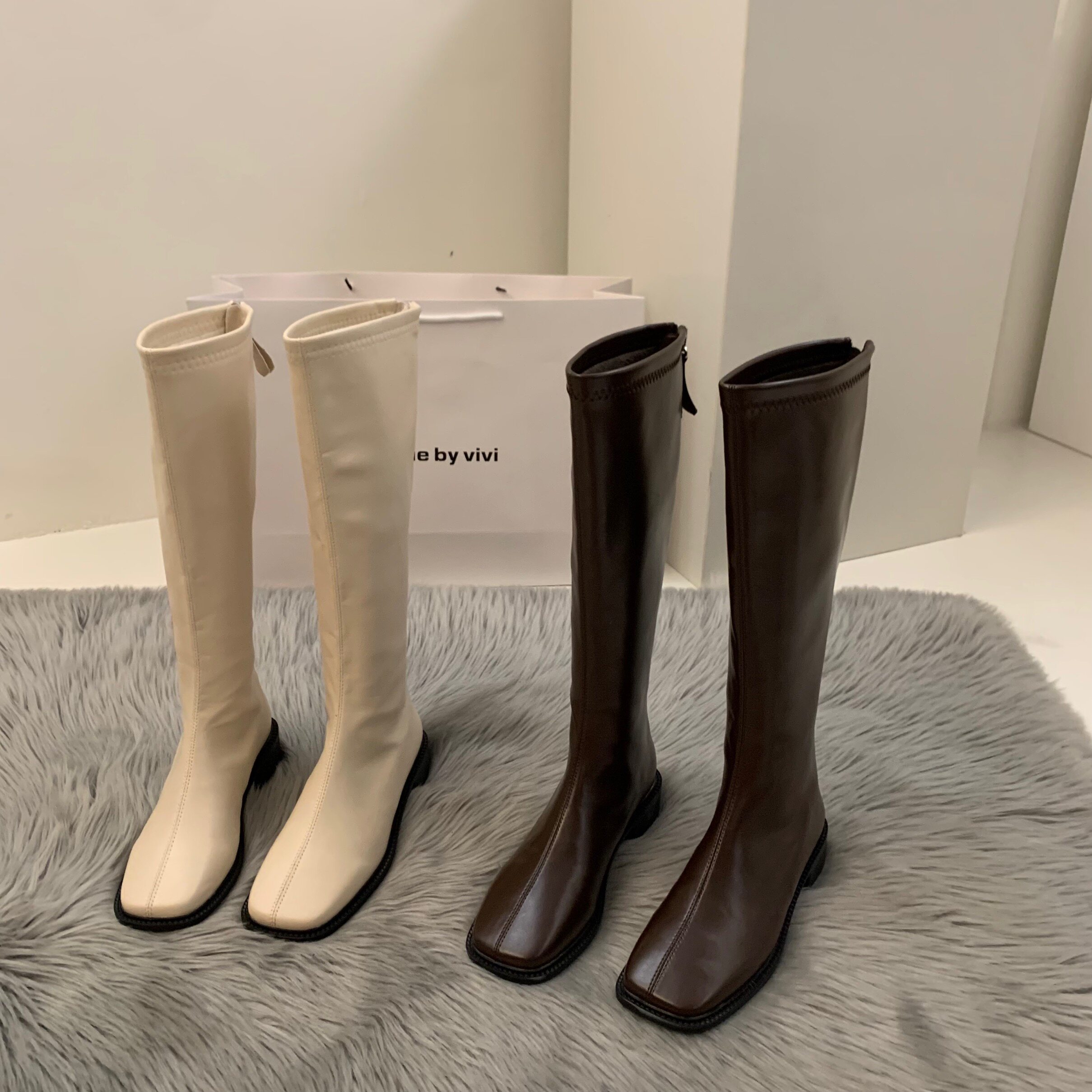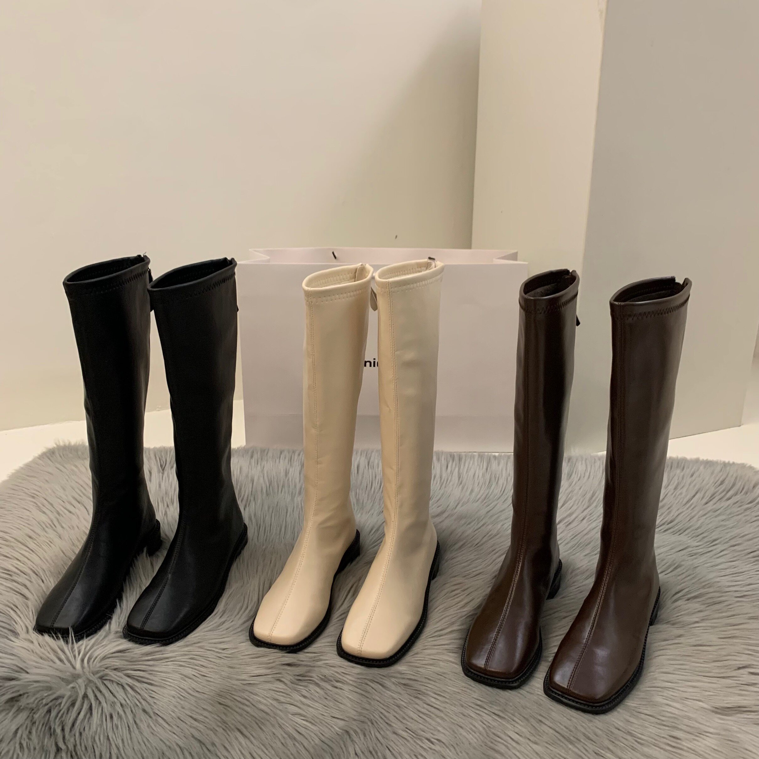 Демисезонные утепленные коричневые белые высокие сапоги, ботинки, коллекция 2022, средней длины
