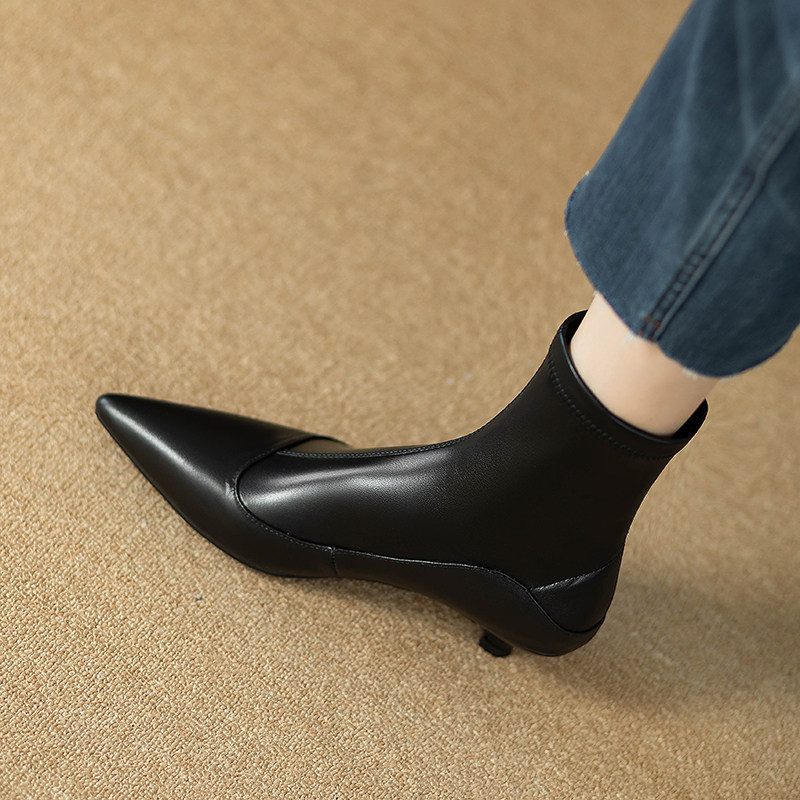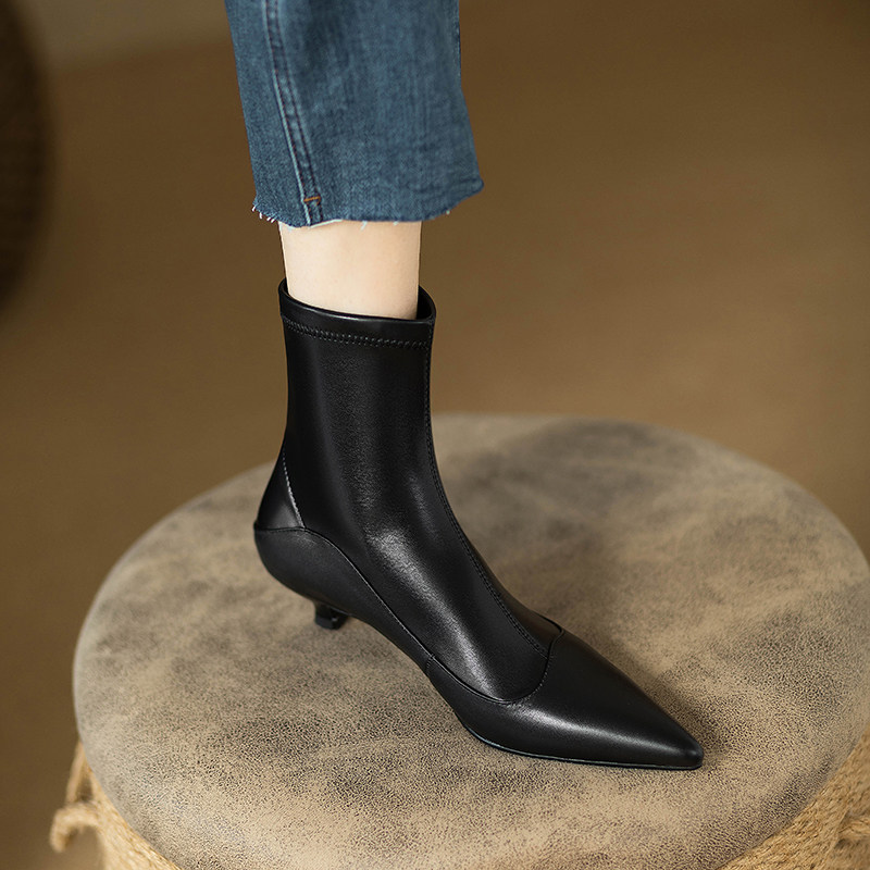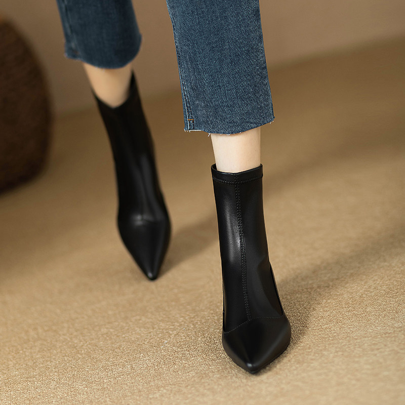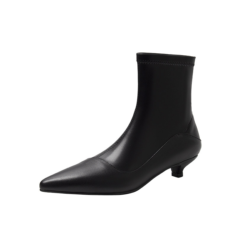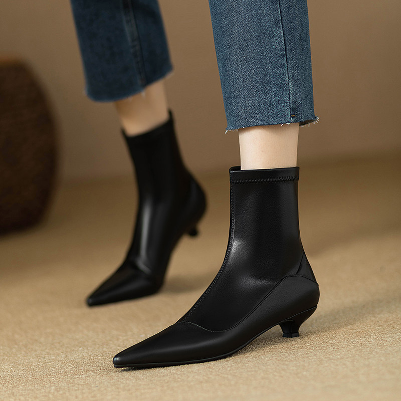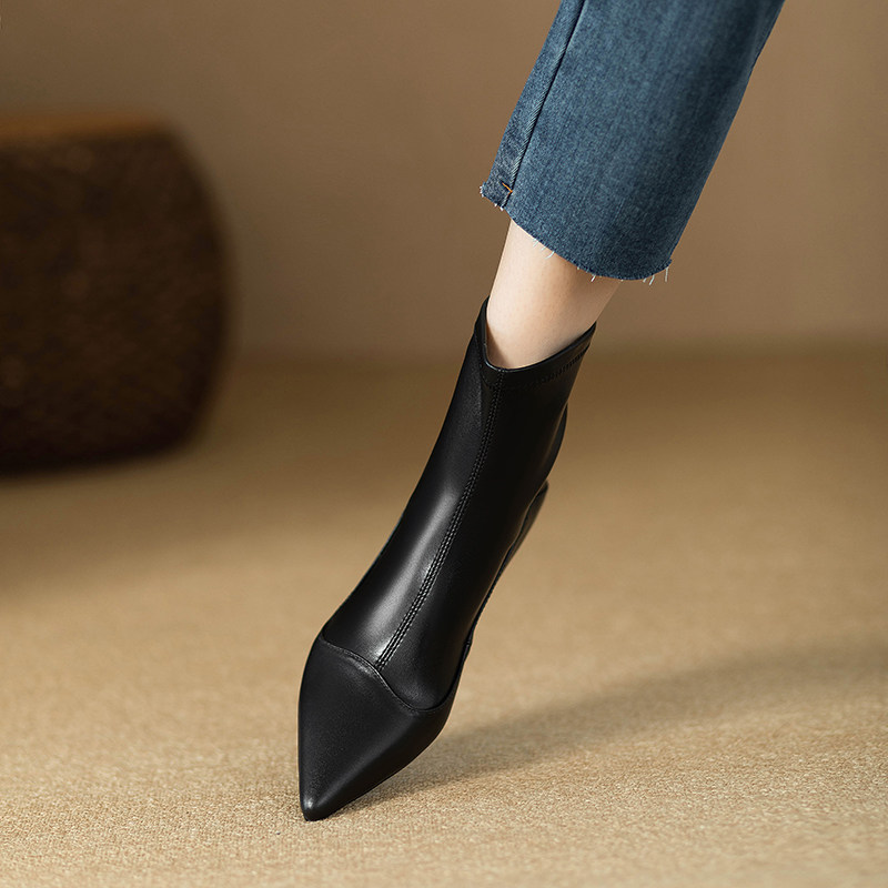 Черные эластичные весенние короткие сапоги с молнией с заостренным носом, коллекция 2023, по фигуре