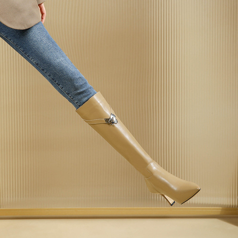 Высокие сапоги с заостренным носом, из натуральной кожи, коллекция 2023