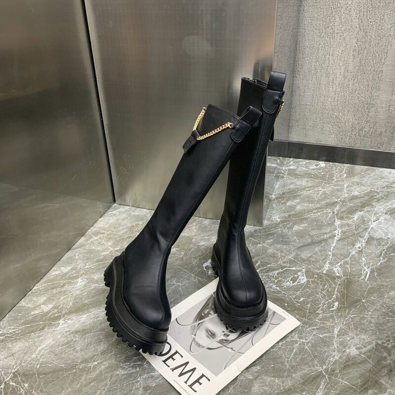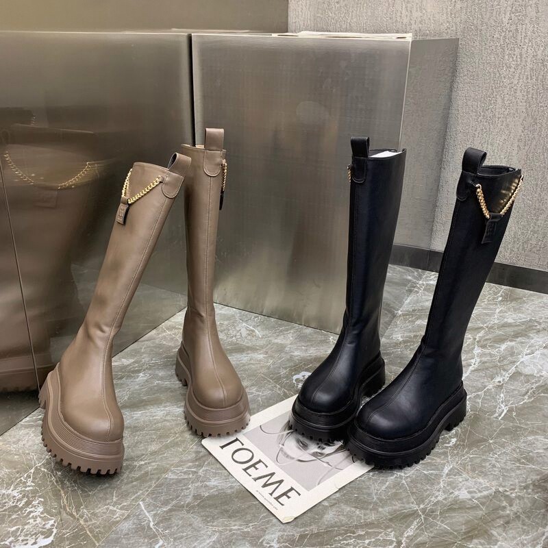 Демисезонные модные высокие сапоги на платформе, 2024 года, по фигуре, популярно в интернете