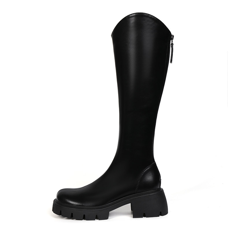 Демисезонные утепленные высокие сапоги, высокие ботинки на платформе, из натуральной кожи, по фигуре