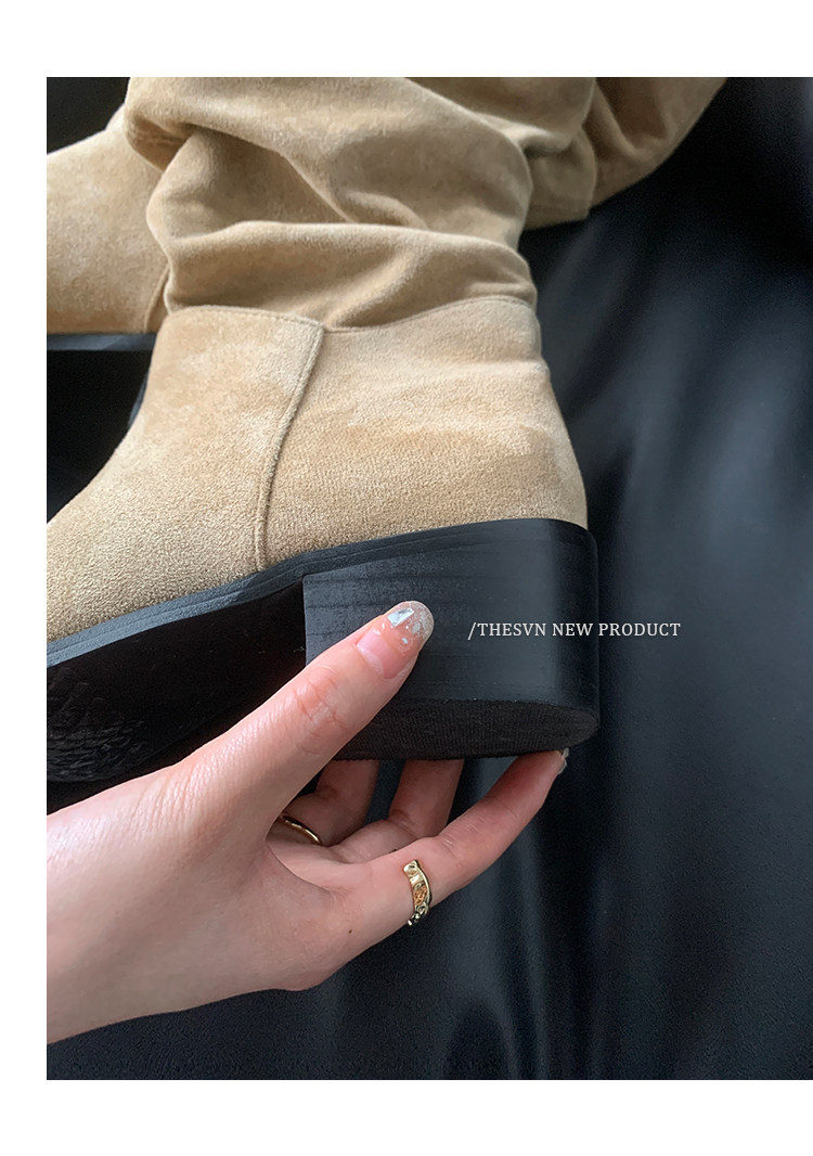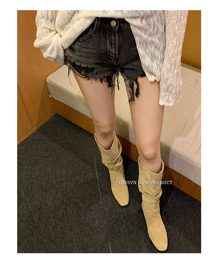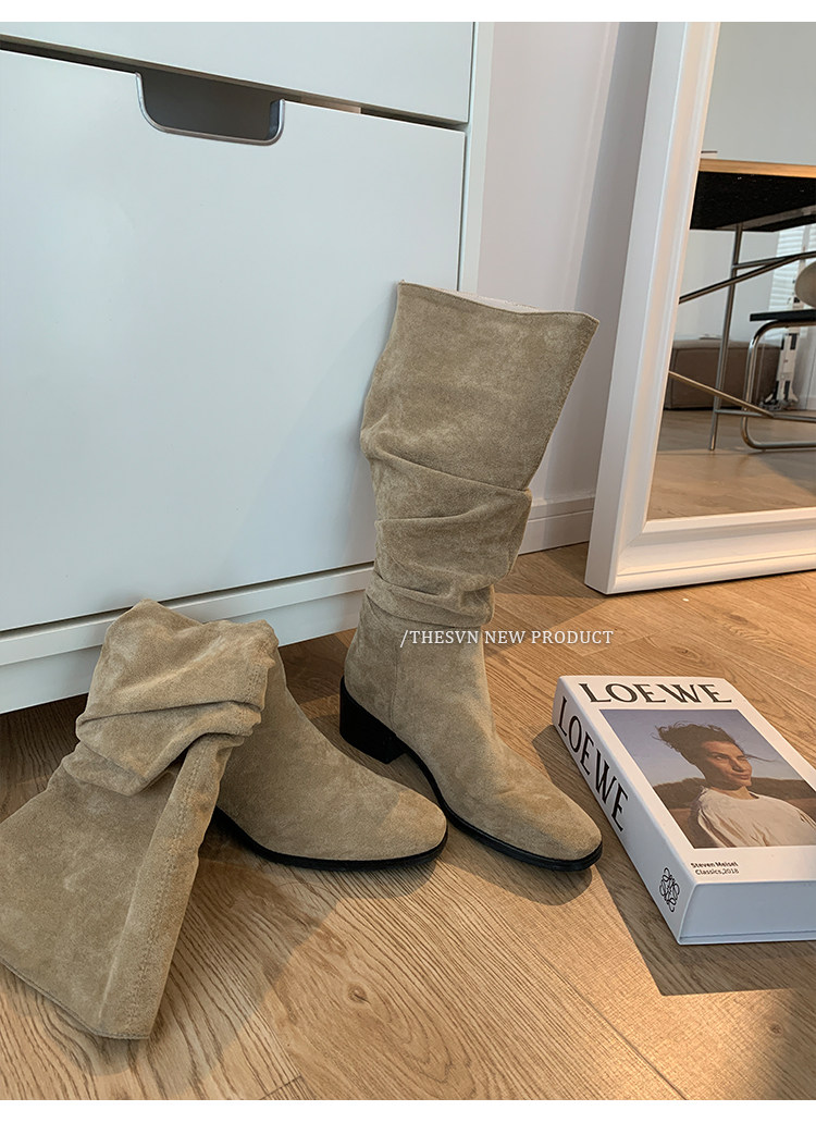 Женские ковбойские сапоги в стиле вестерн, новинка 2025 года, весенне-осенние французские замшевые женские сапоги в стиле вестерн и длинные велосипедные ботинки с высоким ворсом