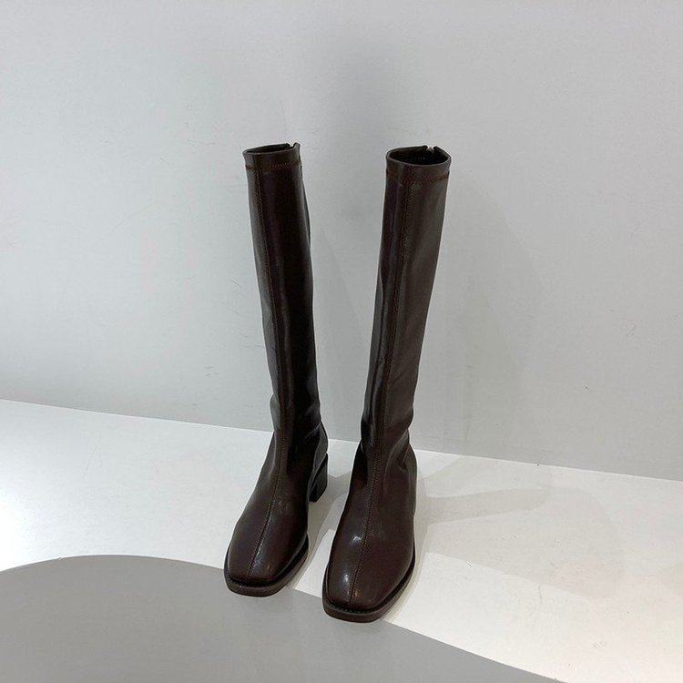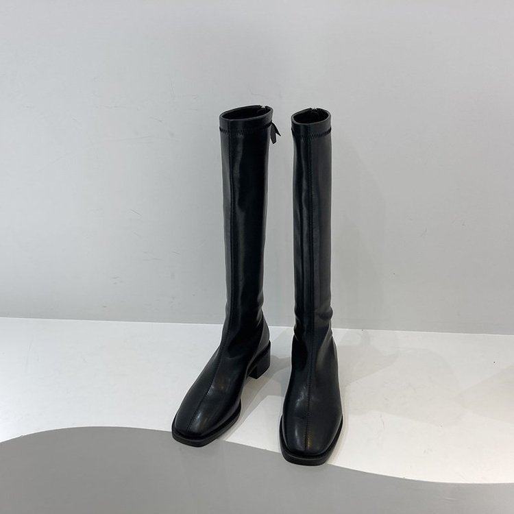 1 Интернет -знаменитость, но коленные длинные ботинки, женщина Южная Корея 2021 Новые осени и зимние грубые каблуки, высокие рыцарские ботинки