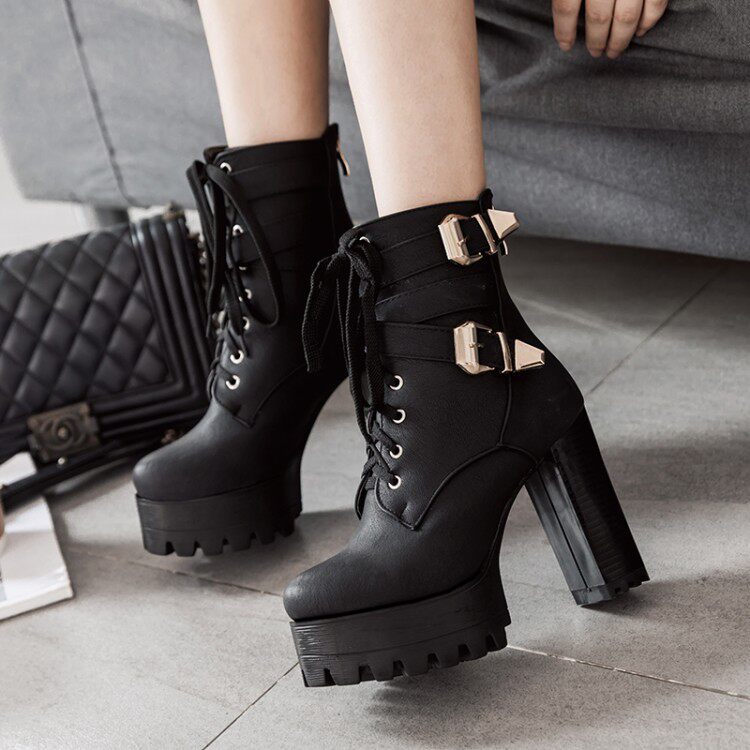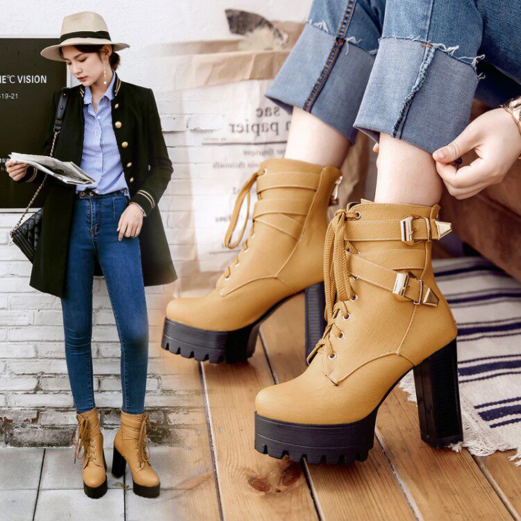 Осень и зима Новые британские 33 Ультра-высокие каблуки Martin Boots Short Boots 40-43 Толстая пятка