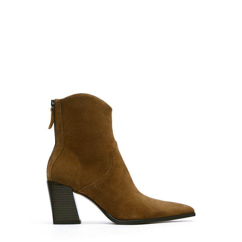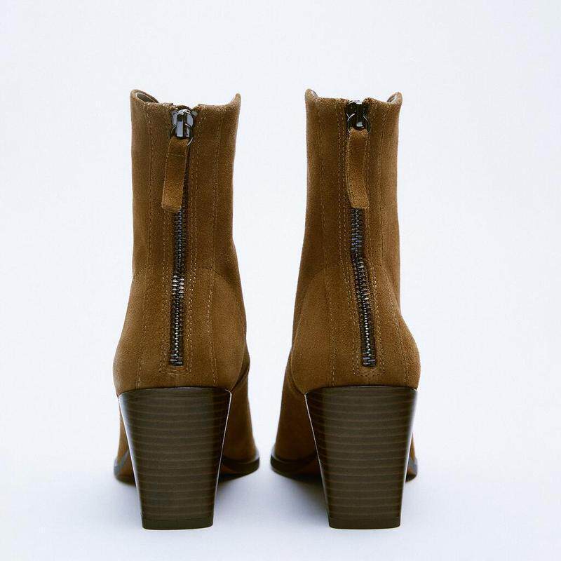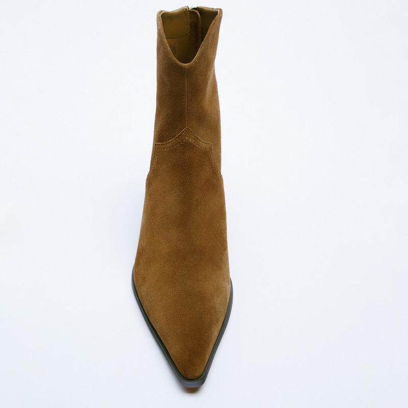 Zara, демисезонные коричневые кожаные ботильоны, короткие сапоги