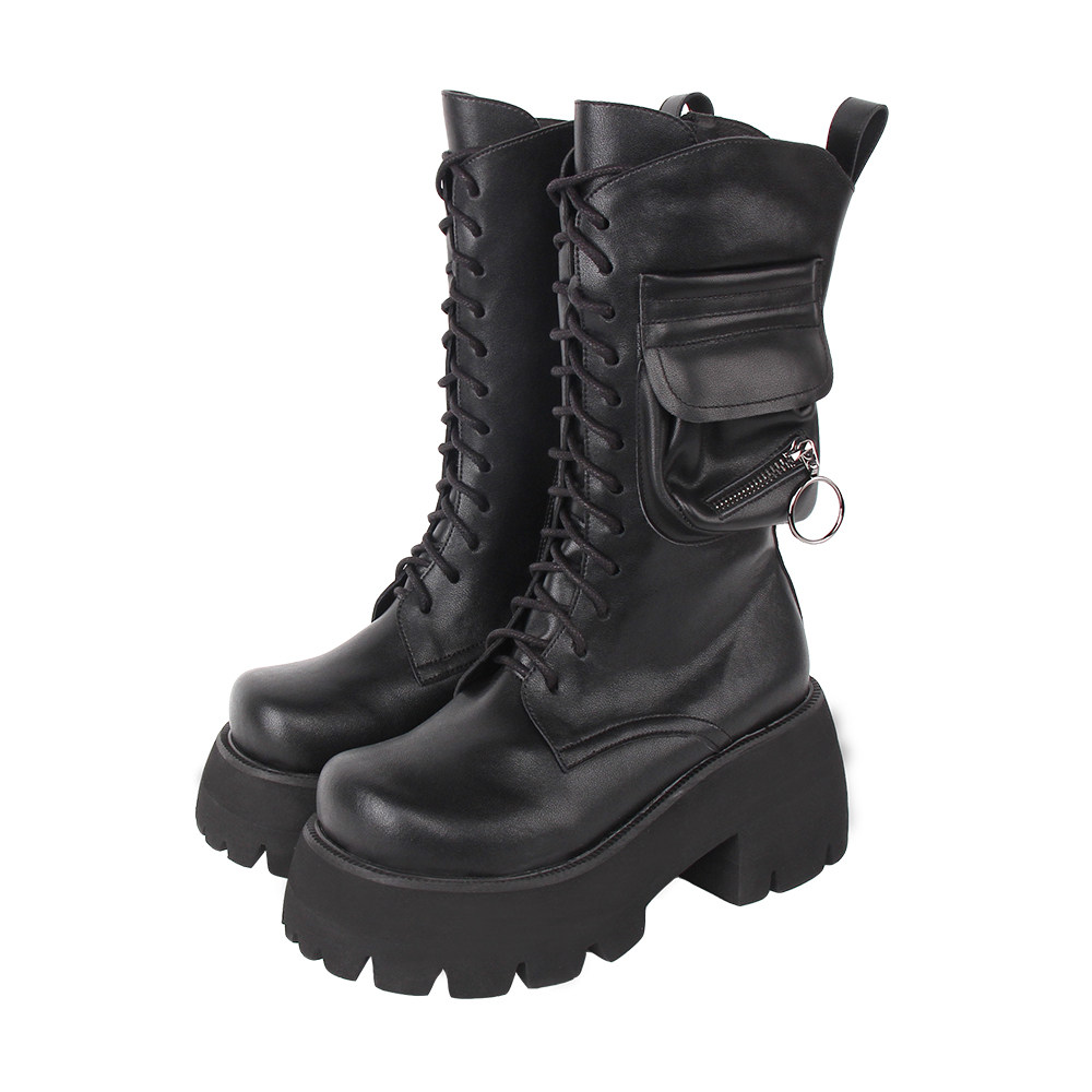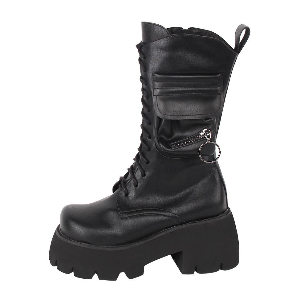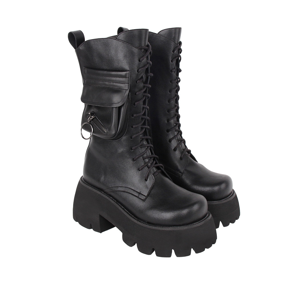 Зимние высокие сапоги на платформе, из натуральной кожи, 25см, в стиле панк, 8см