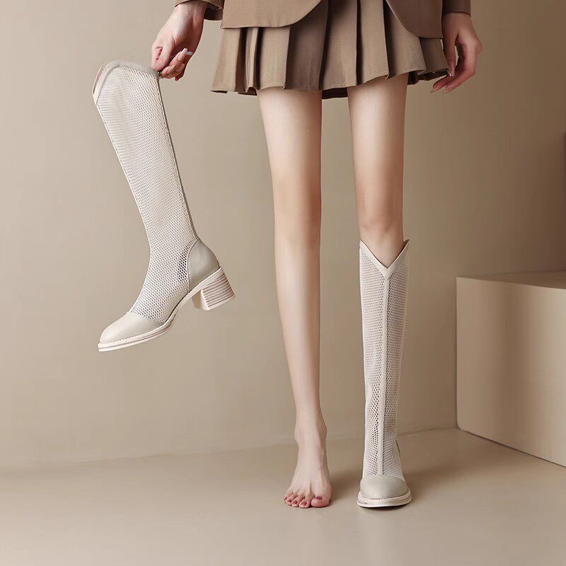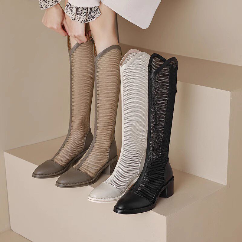Тонкие ботинки, высокие сетчатые дышащие высокие сапоги, подходит для подростков, из натуральной кожи